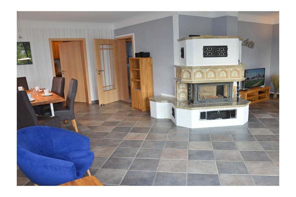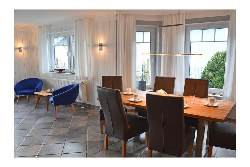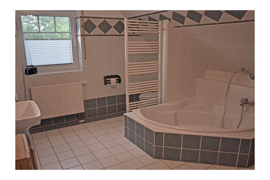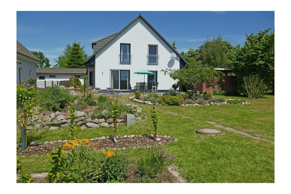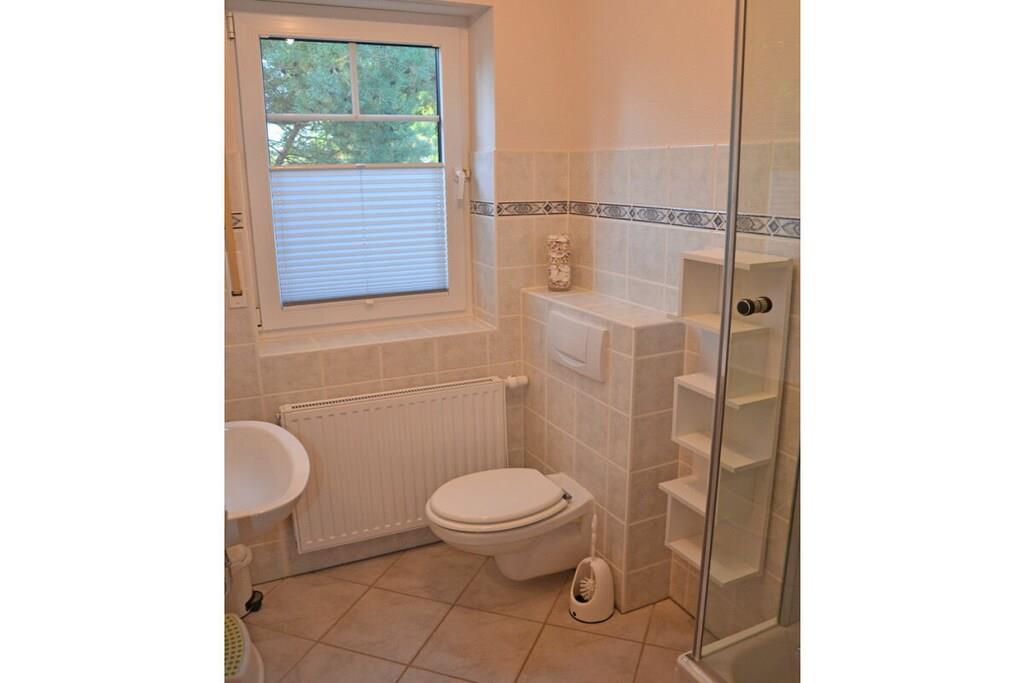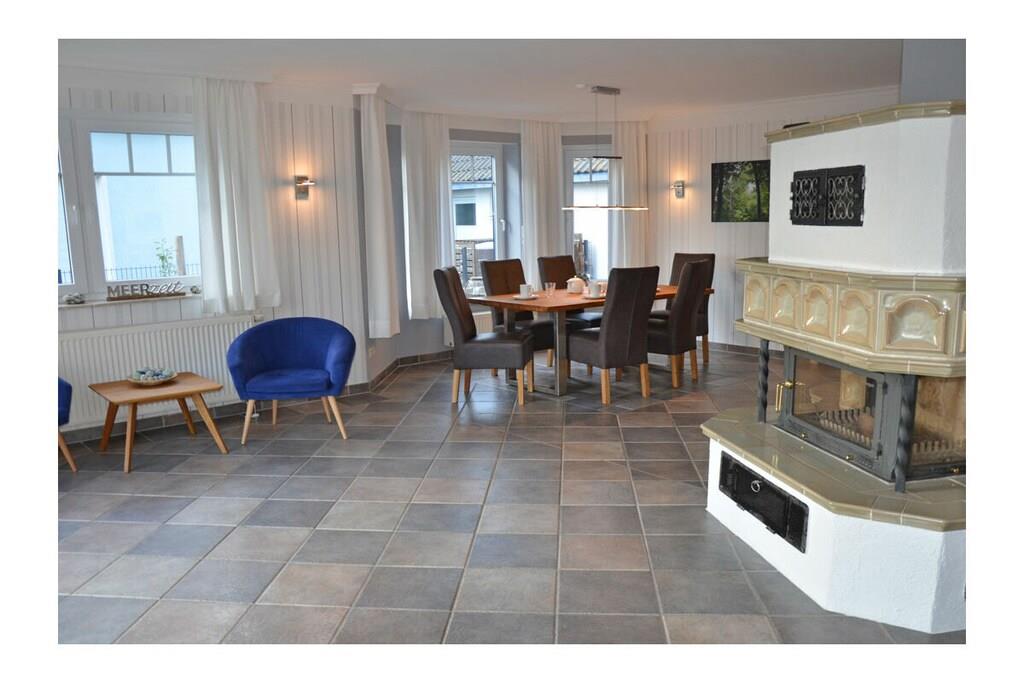 Erdgeschoss: großzügiger Wohn- & Essbereich mit Kamin und gemütlicher Couchlandschaft, TV/Sat (Flatscreen), DVD- Player, Radio/CD, großer Esstisch für 6 Personen im Lichtdurchfluteten Essbereich, geräumige Einbauküche im Landhausstil mit 4-Plattenherd (Ceranfeld), Backofen, Mikrowelle, Kühlschrank mit kleinem Gefrierfach, Geschirrspüler und diversen Elektrogeräten, Bad mit Dusche und WC, Hauswirtschaftsraum mit Waschmaschine und Wäscheständer. Obergeschoss: 1. Schlafzimmer mit einem Doppelbett (zwei getrennte Matratzen je 90x200cm) und Kleiderschrank, 2. Schlafzimmer mit zwei Einzelbetten (je 90x200cm), Kleiderschrank und kleiner Sitzgelegenheit, TV (Flatscreen), 3. Schlafzimmer mit zwei Einzelbetten (je 90x200cm), Kleiderschrank und kleine Sitzgelegenheit, geräumiges Badezimmer mit Badewanne, Dusche und WC. Große Terrasse mit Gartenmöbeln und zwei Sonnenliegen, Grillmöglichkeit besteht (Grill vorhanden) Urlaub im schönen Ferienhaus „Marisol“ Im romantischen und beschaulichen Fischerdorf Glowe liegt das Ferienhaus „Marisol“ in ruhiger, aber zentraler Lage. 1000qm großes Grundstück mit Fernblick zum großen Jasmunder Bodden, Nichtraucher, Waschmaschine vorhanden (ohne Gebühr), kostenfreies WLAN vorhanden, Insektenschutzgitter in jedem Raum, Fahrradabstellmöglichkeit vorhanden (Carport), 2 PKW-Stellplätze direkt am Haus, ein Kinderbett und ein Kinderhochstuhl vorhanden und kostenlos nutzbar, weiteres Kinderbett und Hochstuhl hinzubuchbar! Einkaufsmöglichkeiten, Bäcker und Restaurants in unmittelbarer Nähe, optimale Rad- und Wandermöglichkeiten, Haustiere aus Rücksicht auf Allergiker nicht gestattet