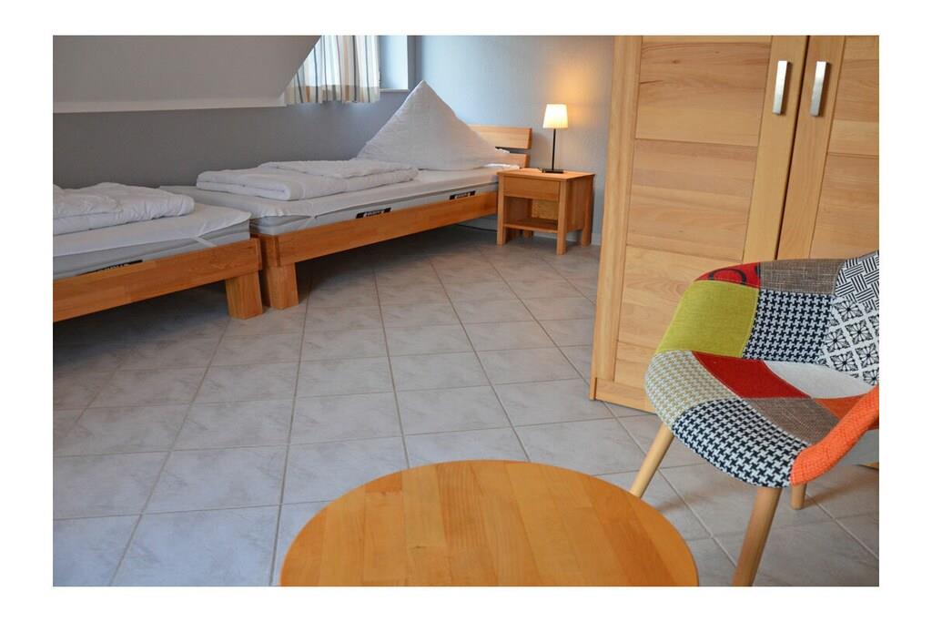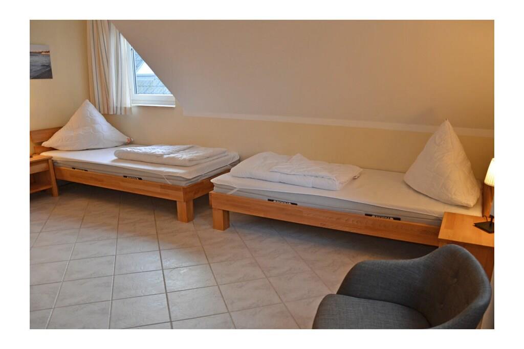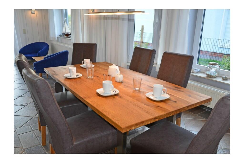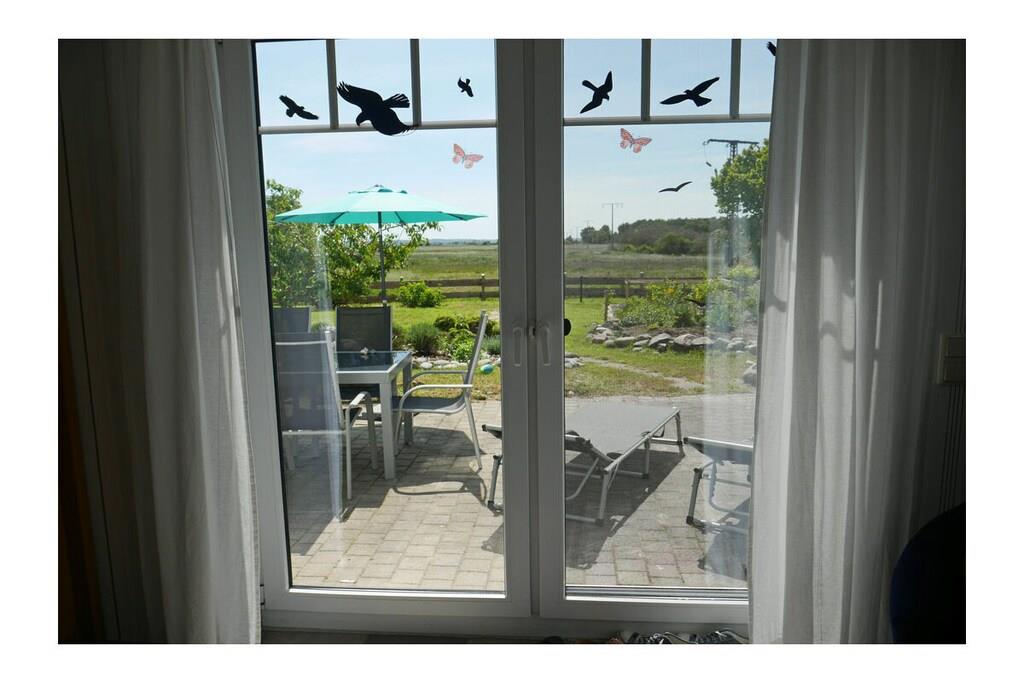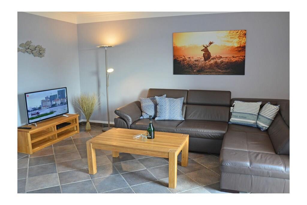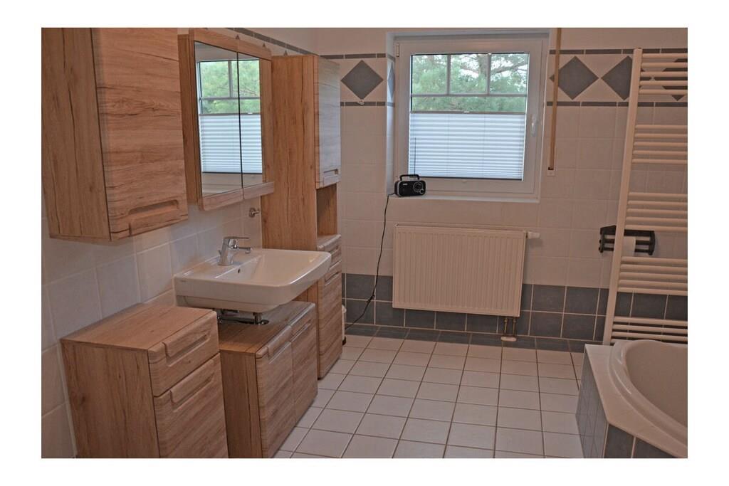 Erdgeschoss: großzügiger Wohn- & Essbereich mit Kamin und gemütlicher Couchlandschaft, TV/Sat (Flatscreen), DVD- Player, Radio/CD, großer Esstisch für 6 Personen im Lichtdurchfluteten Essbereich, geräumige Einbauküche im Landhausstil mit 4-Plattenherd (Ceranfeld), Backofen, Mikrowelle, Kühlschrank mit kleinem Gefrierfach, Geschirrspüler und diversen Elektrogeräten, Bad mit Dusche und WC, Hauswirtschaftsraum mit Waschmaschine und Wäscheständer. Obergeschoss: 1. Schlafzimmer mit einem Doppelbett (zwei getrennte Matratzen je 90x200cm) und Kleiderschrank, 2. Schlafzimmer mit zwei Einzelbetten (je 90x200cm), Kleiderschrank und kleiner Sitzgelegenheit, TV (Flatscreen), 3. Schlafzimmer mit zwei Einzelbetten (je 90x200cm), Kleiderschrank und kleine Sitzgelegenheit, geräumiges Badezimmer mit Badewanne, Dusche und WC. Große Terrasse mit Gartenmöbeln und zwei Sonnenliegen, Grillmöglichkeit besteht (Grill vorhanden) Urlaub im schönen Ferienhaus „Marisol“ Im romantischen und beschaulichen Fischerdorf Glowe liegt das Ferienhaus „Marisol“ in ruhiger, aber zentraler Lage. 1000qm großes Grundstück mit Fernblick zum großen Jasmunder Bodden, Nichtraucher, Waschmaschine vorhanden (ohne Gebühr), kostenfreies WLAN vorhanden, Insektenschutzgitter in jedem Raum, Fahrradabstellmöglichkeit vorhanden (Carport), 2 PKW-Stellplätze direkt am Haus, ein Kinderbett und ein Kinderhochstuhl vorhanden und kostenlos nutzbar, weiteres Kinderbett und Hochstuhl hinzubuchbar! Einkaufsmöglichkeiten, Bäcker und Restaurants in unmittelbarer Nähe, optimale Rad- und Wandermöglichkeiten, Haustiere aus Rücksicht auf Allergiker nicht gestattet