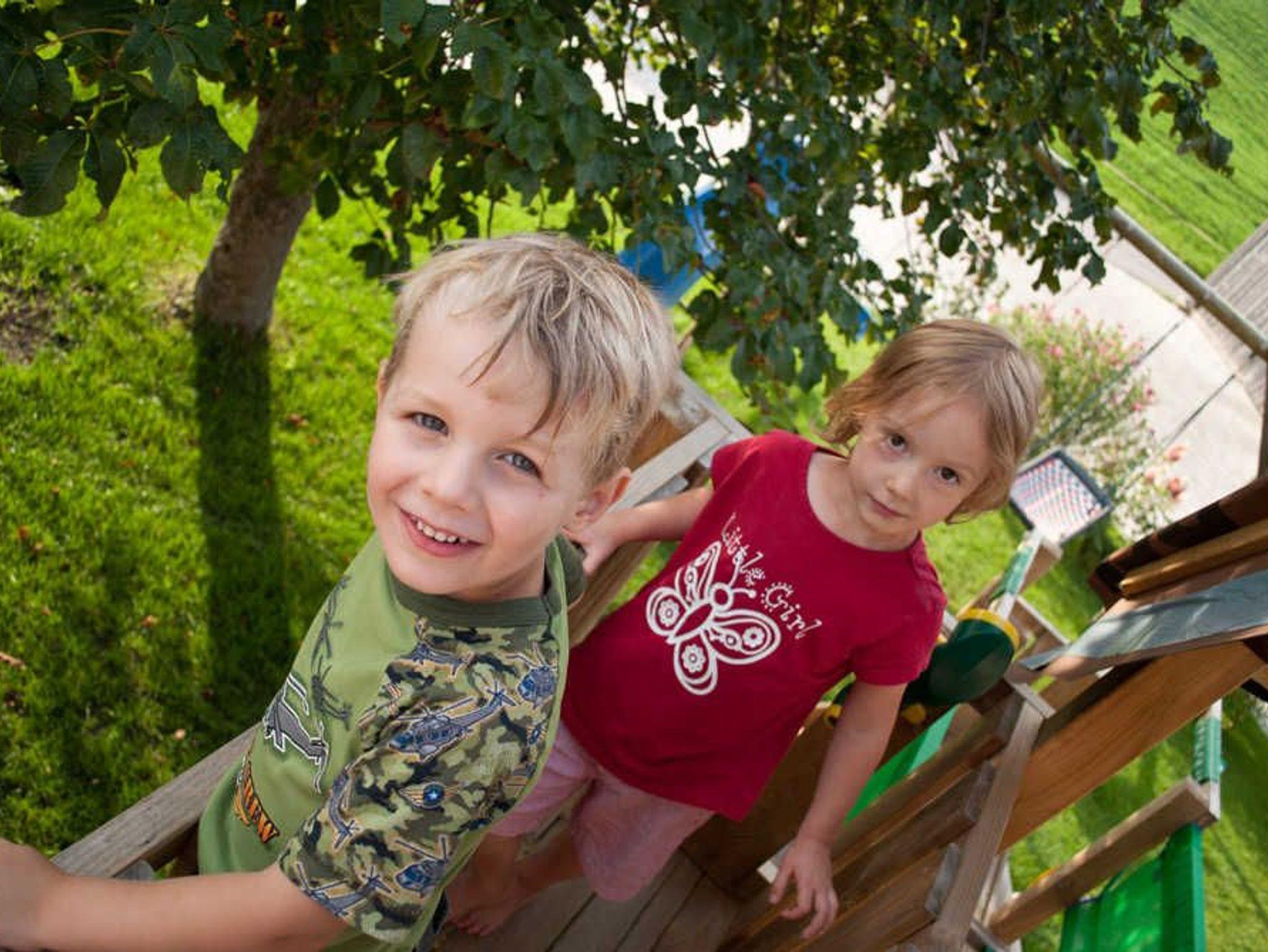 Sie haben von jeder Wohnung Sicht in den Hof, so das sie Ihre Kinder die vielleicht gerade auf dem Riesentrampolin hüpfen, oder auf der Schaukel sitzen oder mit irgendwelchen Fahrzeugen unterwegs sind, stehts im Blick haben.