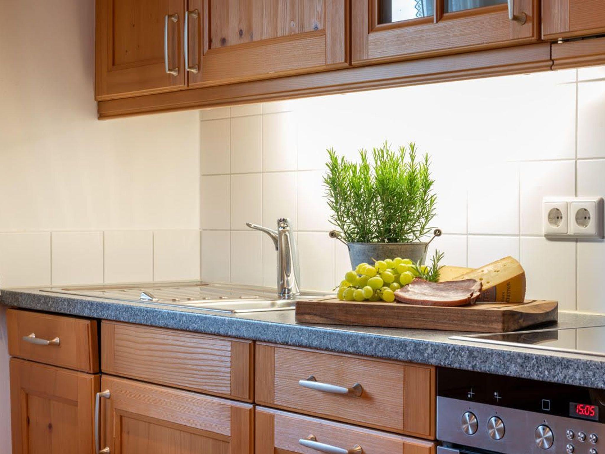 Die Wohnung verfügt über zwei getrennte Schlafzimmer im Obergeschoss. Das Kinderzimmer hat drei Einzelbetten. Die Küche ist seperat und hat eine zusätzliche Essecke. Dadurch ist genügend Platz sich auch einmal zurückzuziehen. Außerdem ist noch ein kleiner Abstellraum vorhanden.
