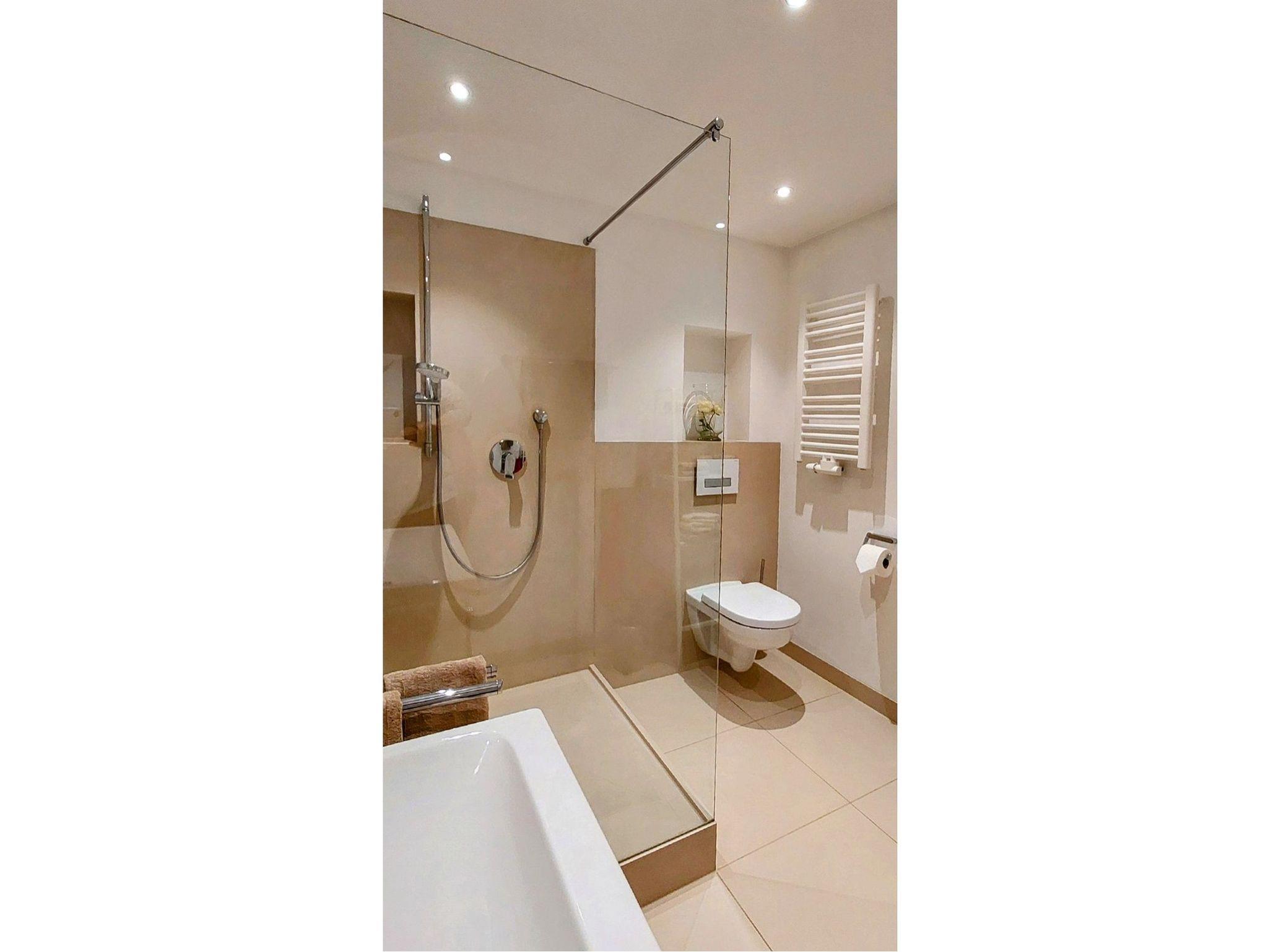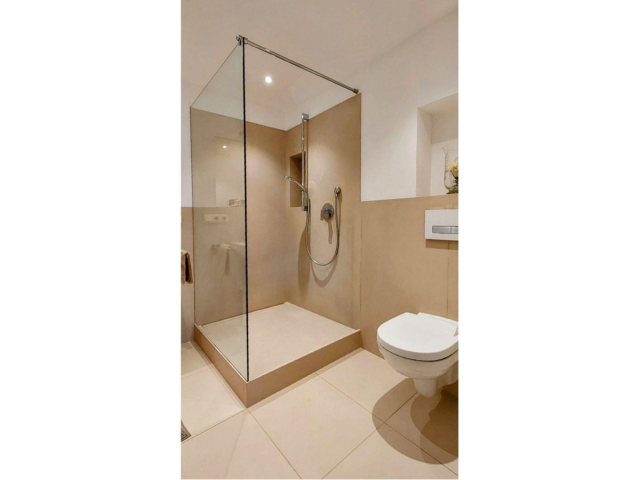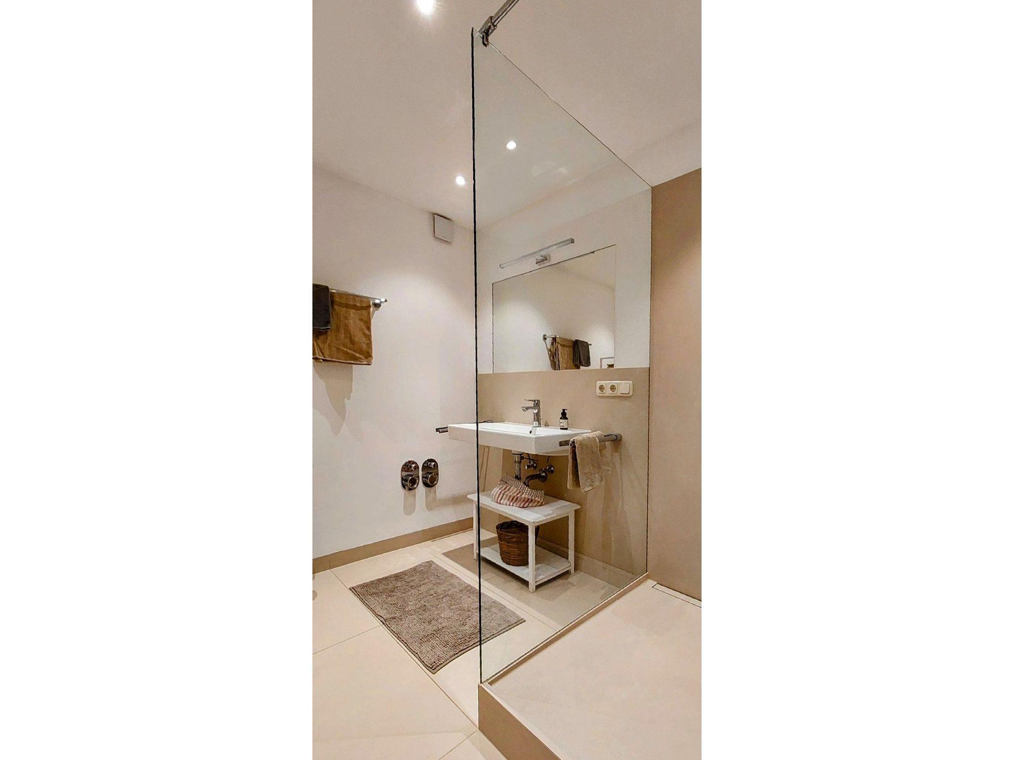 • Badezimmer (innenliegend) mit XL Dusche, Waschtisch und WC