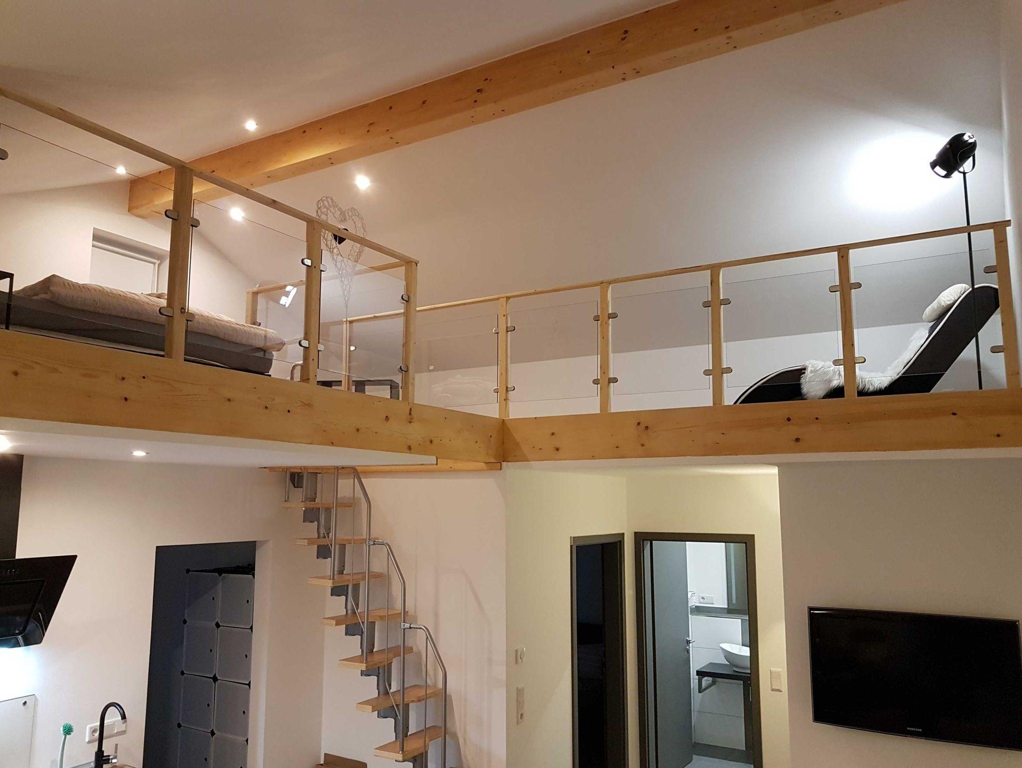 -Schlafzimmer Empore mit Doppelbett und TV