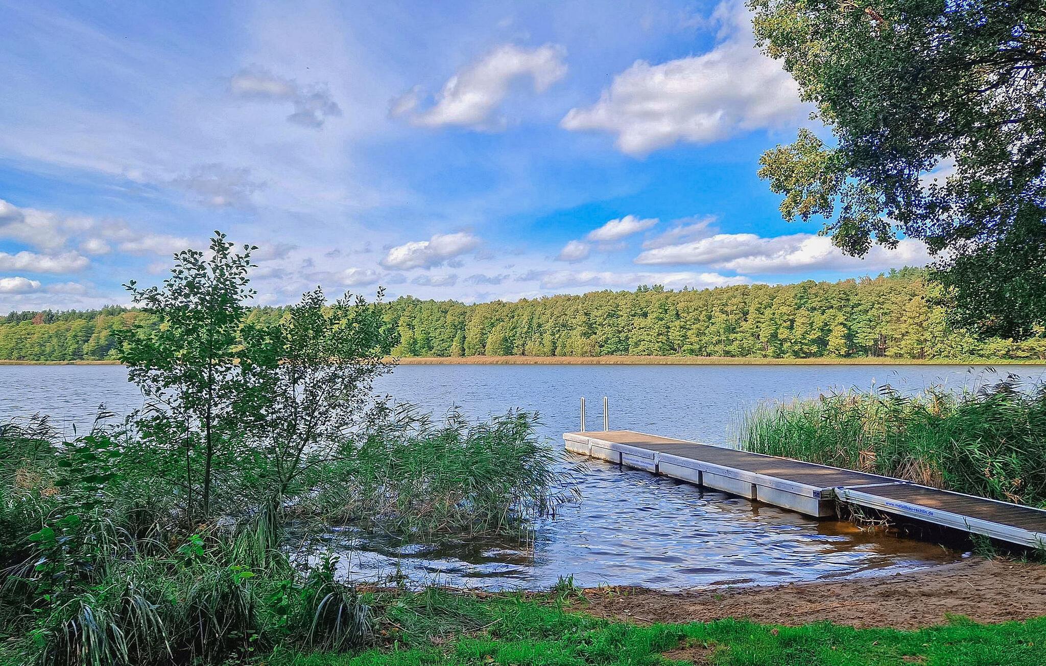 Idyllisk beliggende i Papiermühle-kvarteret i Godendorf, kun få skridt fra Sägersee og indgangen til naturparken Feldberger Seenlandschaft, er der to ferielejligheder for op til 5 personer hver på ejernes cirka 3.000 kvadratmeter store beboelsesejendom på grunden og øverste etager i et separat hus. Fra ejendommen er der direkte adgang til Sägersee, en god fiskesø, hvor der er anløbsbro med badestige. Et smukt badeområde findes ved søen Godendorf, cirka 2,4 km væk.For både centralopvarmede lejligheder er der udover terrassen eller altanen ekstra siddepladser, solbadning og friarealer til rådighed på den omfattende ejendom, samt en grill, liggestole, cykelkælder og flere parkeringspladser. Den samlede rejsepris inkluderer slutrengøring, vand- og elforbrug. Medbring venligst eget sengelinned og håndklæder. Kæledyr er ikke tilladt i denne ejendom. Den cirka 50 kvadratmeter store ferielejlighed på øverste etage har en stue (polstrede møbler med sovefunktion, LCD TV, radio, CD/DVD) og et separat køkken (elkomfur med ovn, køleskab, fryser, opvaskemaskine, mikroovn, spisestue bord, diverse køkkenmaskiner), 2 soveværelser (1 x dobbeltseng, 1 x 2 enkeltsenge), et badeværelse (bruser, toilet, hårtørrer, vaskemaskine) og en møbleret balkon med udsigt over søen. Godendorf, med sine distrikter Papiermühle og Scheibemühle, er et idyllisk samfund omgivet af flere søer og skove, beliggende i den sydlige del af Mecklenburg, på grænsen til Brandenburg, mellem Neustrelitz og Fürstenberg. Begge byer med restauranter, indkøbsmuligheder og turistattraktioner (museer, teatre, zoologiske haver, udstillinger, passagerbåde) er omkring 10 kilometer væk. Der er en restaurant i ridestalden ca. 3 km væk, og en bagerbil kommer en gang om ugen. Adskillige søer (inklusive den eponyme Godendorfer See) inviterer dig til at svømme, fiske eller padle, den tilstødende Müritz Nationalpark og Feldberger Seenlandschaft Nature Park inviterer dig til at tage på lange vandreture, observere naturen (traner, bævere, havørne eller fiskeørne), cykelture eller plukke svampe.