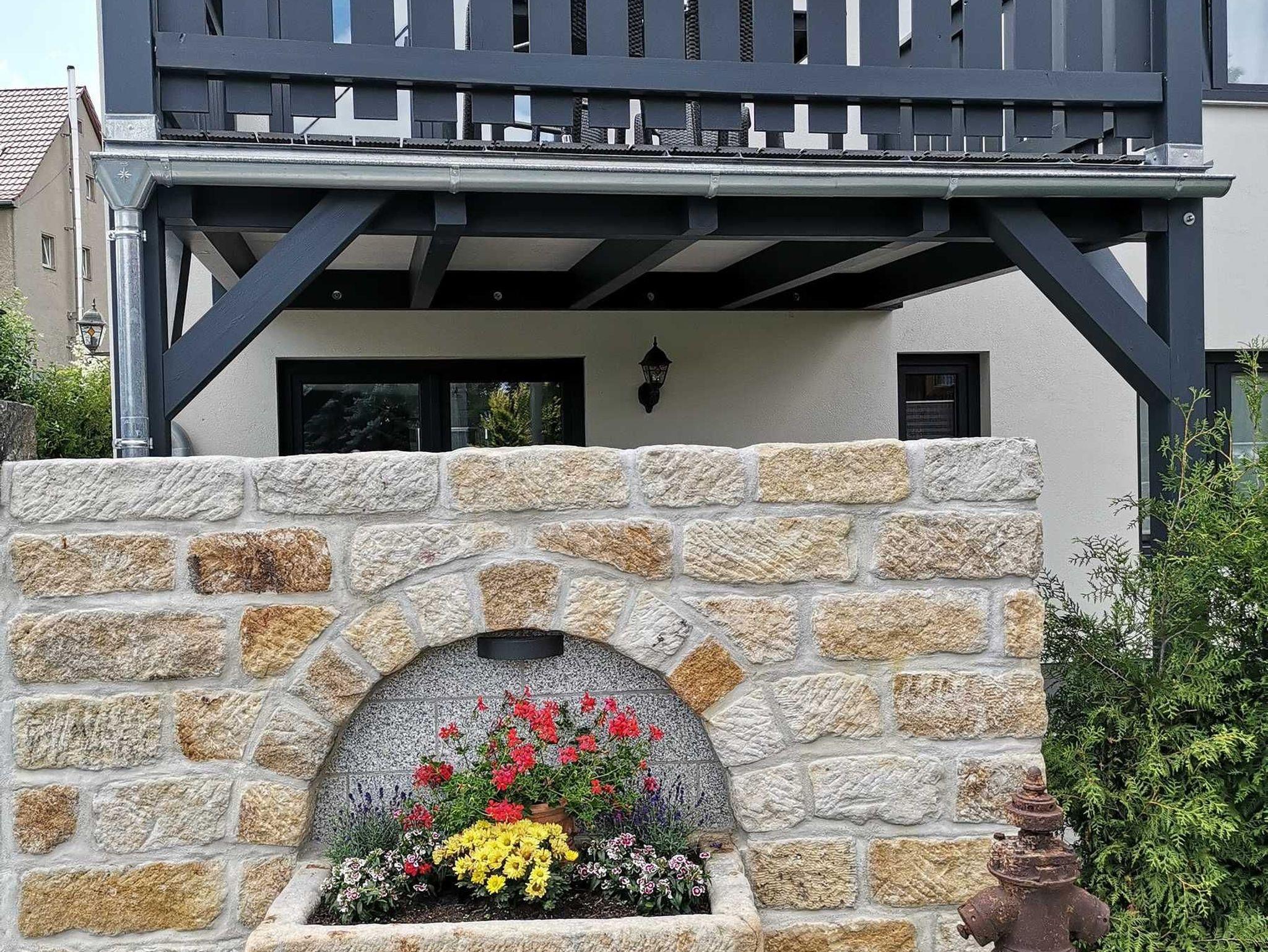 Von der Küche aus gelangen Sie direkt auf die Terrasse bzw. den Balkon. Waschmaschine und Trockner befinden sich im separaten Wirtschaftshaus.