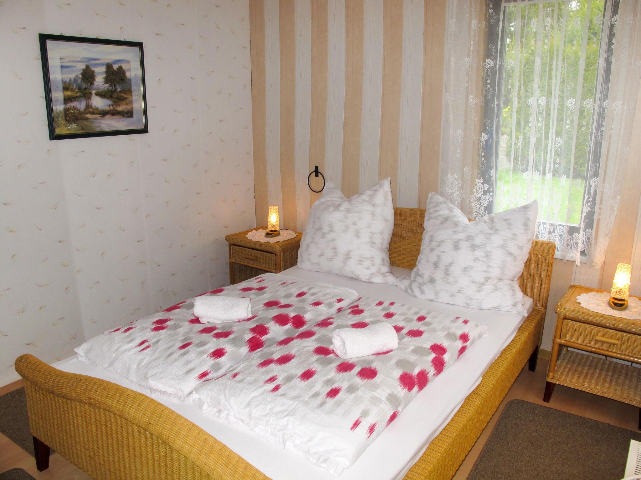 House "Siglinde". 500 m from the centre of Goldberg, on the outskirts, 15 km from the centre of Lübz, 33 km from the centre of Güstrow, 2.2 km from the lake. Private: property 400 m2, garden with lawn and wildlife garden, parking (for 2 cars) at the house. Supermarket 800 m, restaurant 20 m, bus stop "Goldberg, Amtstrasse" 150 m, grass beach 2.2 km.