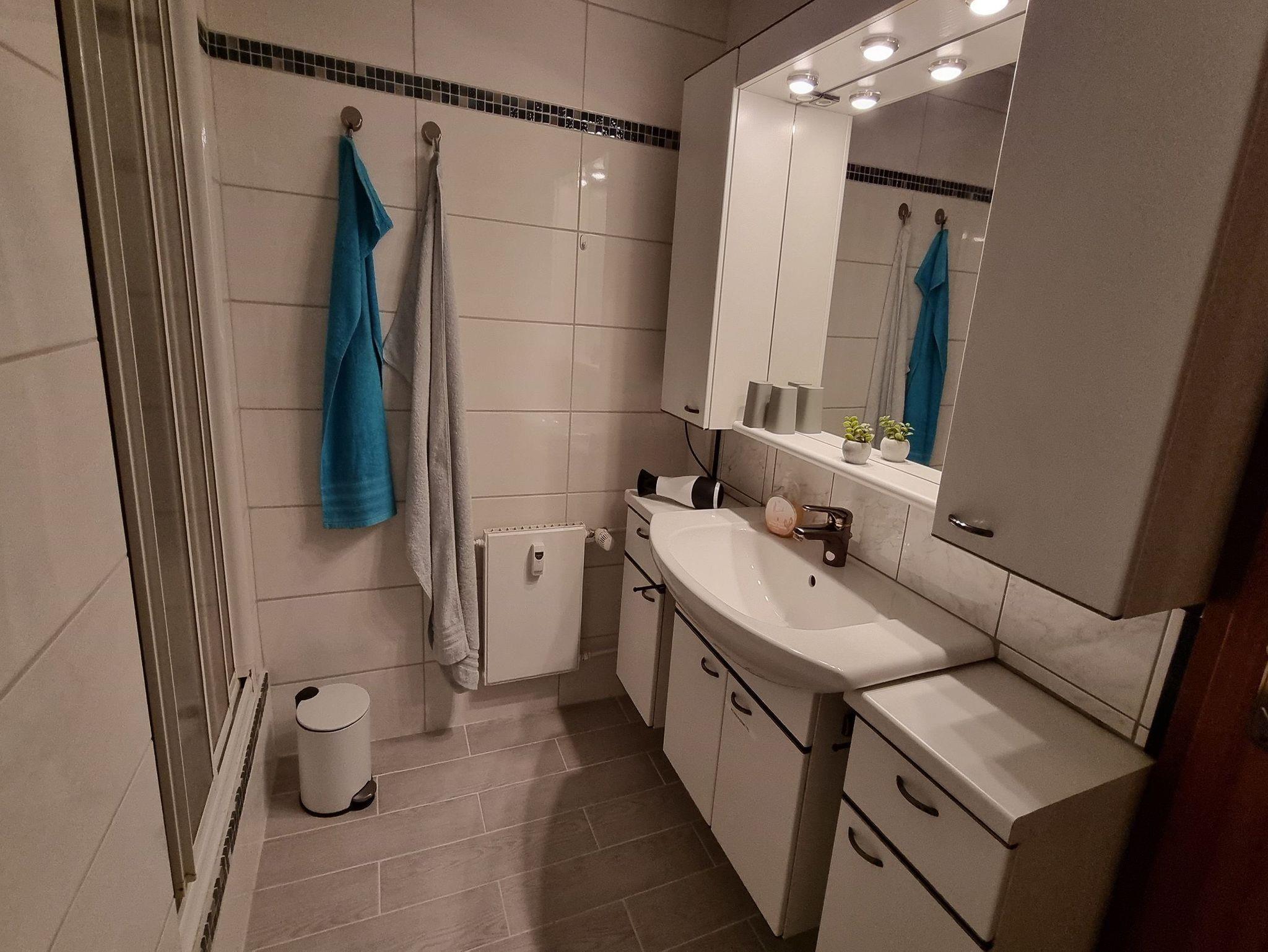 Ein geräumiges Bad mit Dusche, WC und Fön gehören ebenso zur Ausstattung wie ein separates kleines Gäste-WC. Ein kleines Esszimmer sowie ein Ankleidezimmer geben der Wohnung einen individuellen Charme. Für unsere kleinen Gäste, bis 2 Jahre, steht Ihnen ein Kinderreisebett und ein Kinderhochstuhl zur Verfügung.