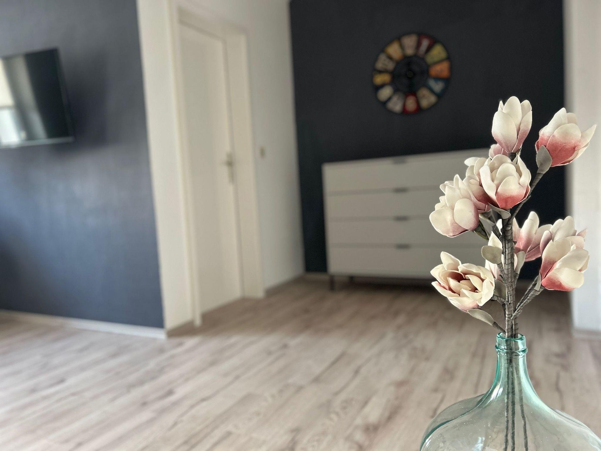 Nichtraucherwohnung, moderne Ausstattung, Bad mit Dusche/WC, 40 HD TV, Free WiFi, Küche/Esszimmer (Kaffeemaschine, Toaster, Wasserkocher vorhanden), Schlafzimmer, Wohnzimmer, Flur.