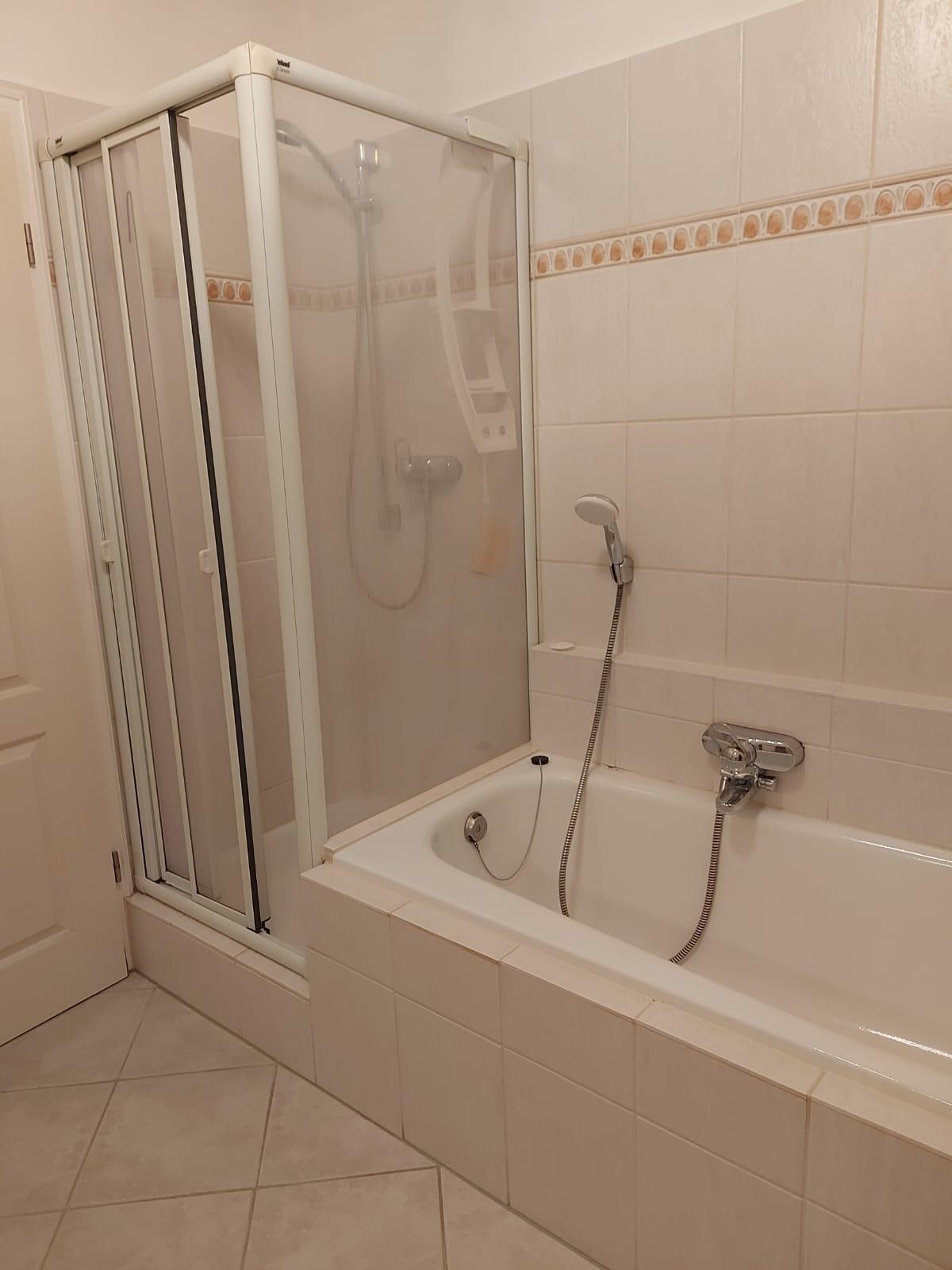 Badeværelse med bruser og badekar