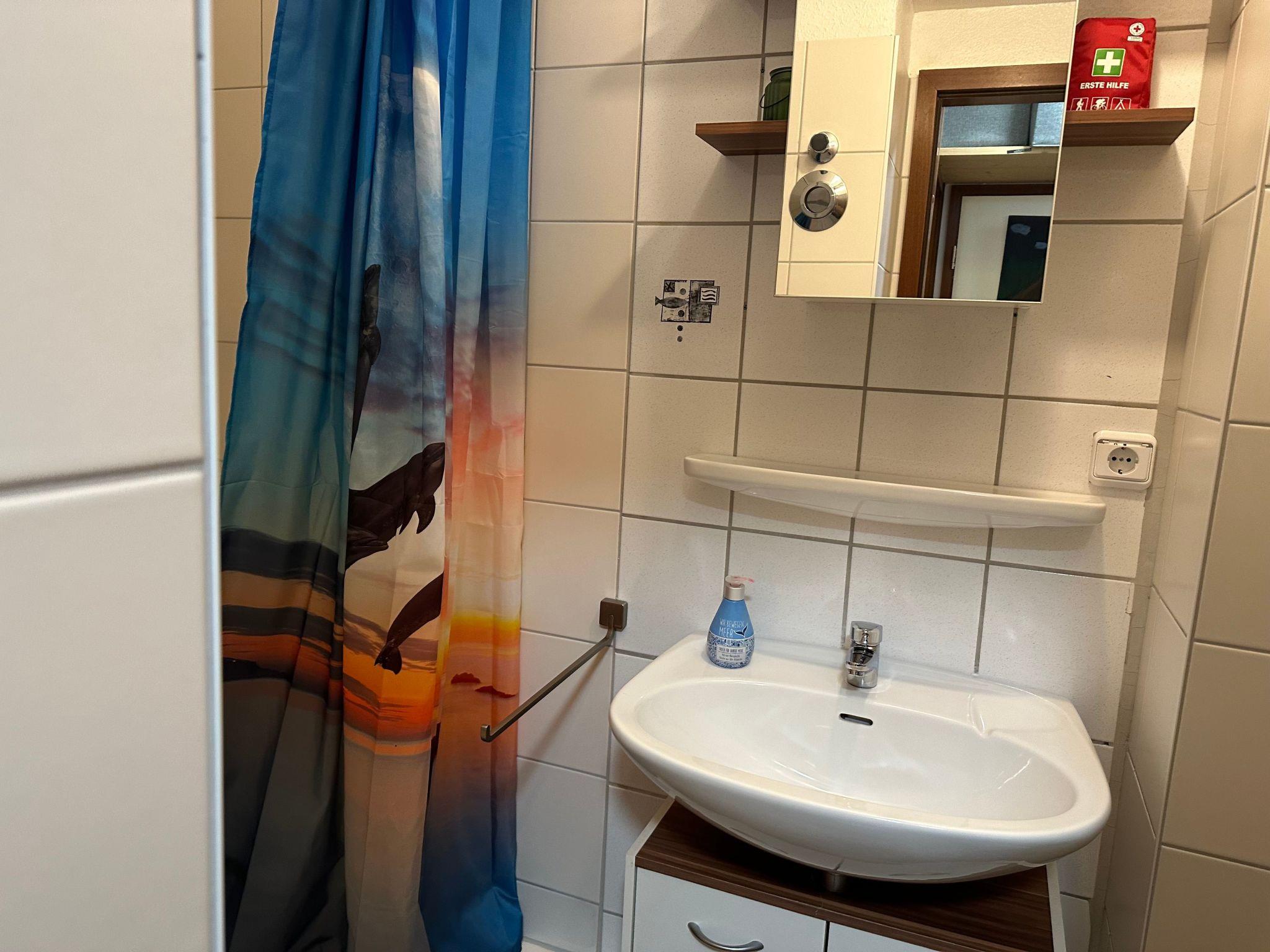 Inside, the flat impresses with its modern and high-quality furnishings. The combined living/dining room with open-plan kitchen leaves nothing to be desired: A leather sofa, a large dining table for 5 and a fully equipped kitchenette guarantee a pleasant stay. Two bedrooms with box-spring beds, including a double bed and two single beds, offer excellent sleeping comfort. The interior is complemented by two newly tiled bathrooms, one with a walk-in shower, and free high-speed WiFi as well as a GIGA TV box from Vodafone including Netflix for entertainment in the evening.