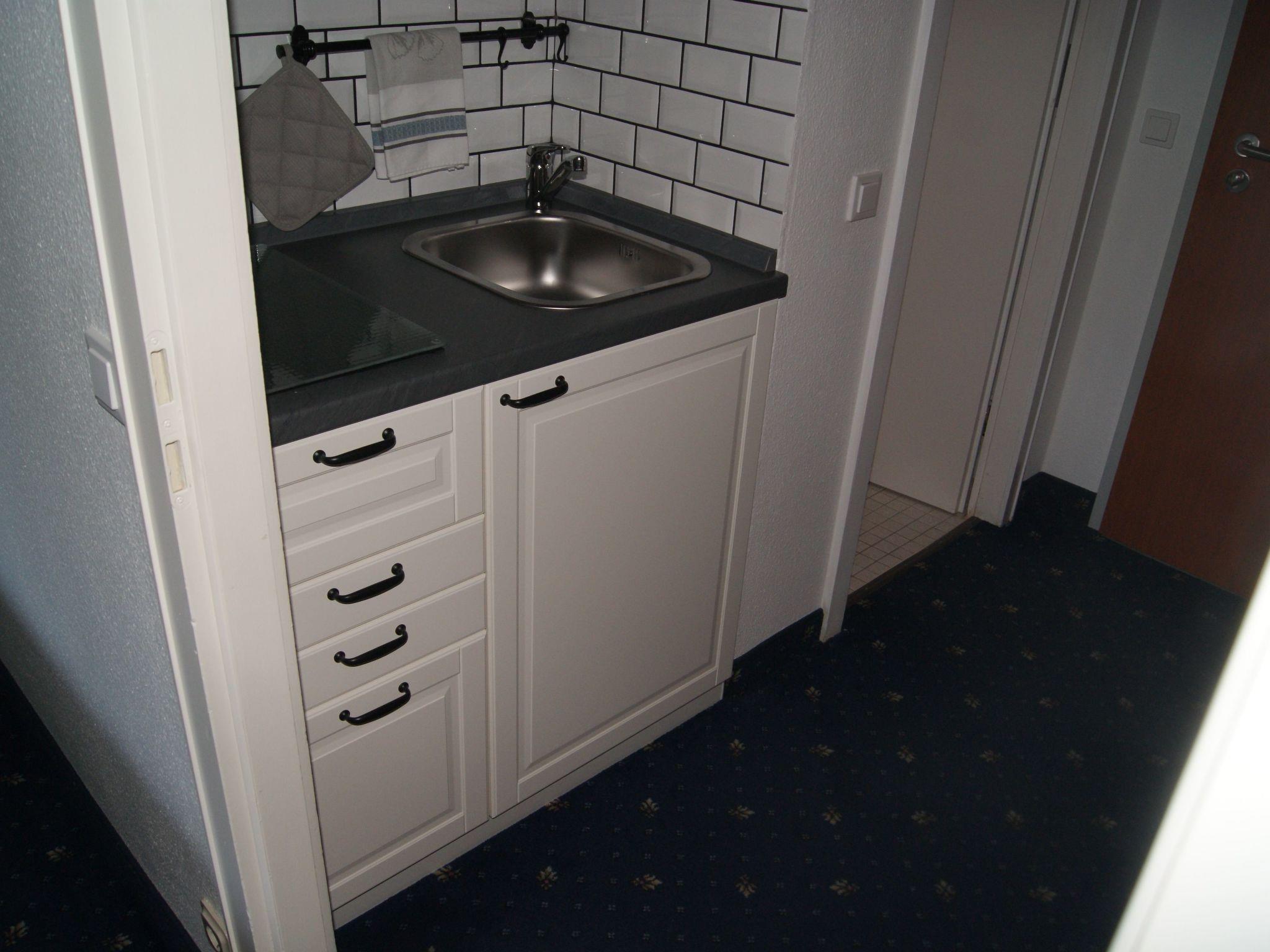 Our cosy little flat has a mini-kitchen with 2-plate ceramic hob, microwave, coffee machine, Tassimo, kettle, toaster.