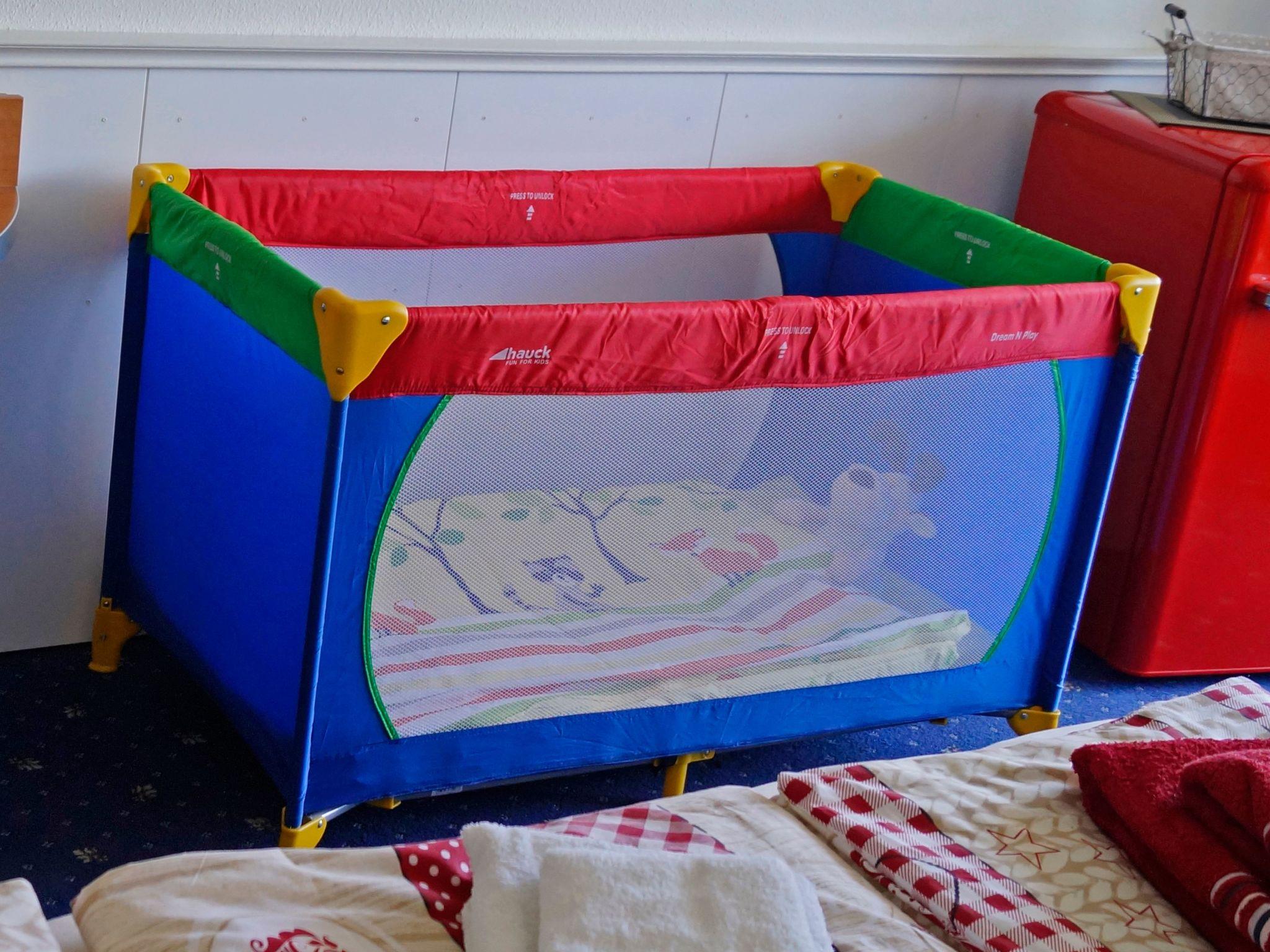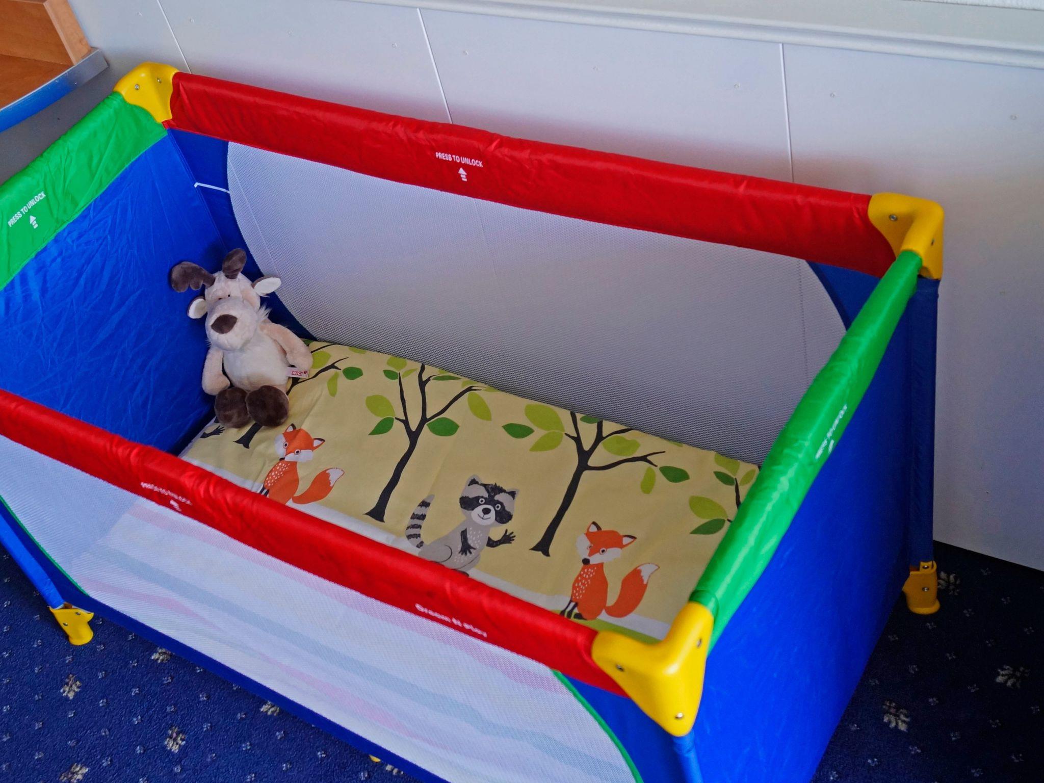 In the living and sleeping area there is a 2x2m bed, where a child fits comfortably in the middle. You will receive the 3rd bedding from us free of charge. We can also provide you with a baby cot free of charge.