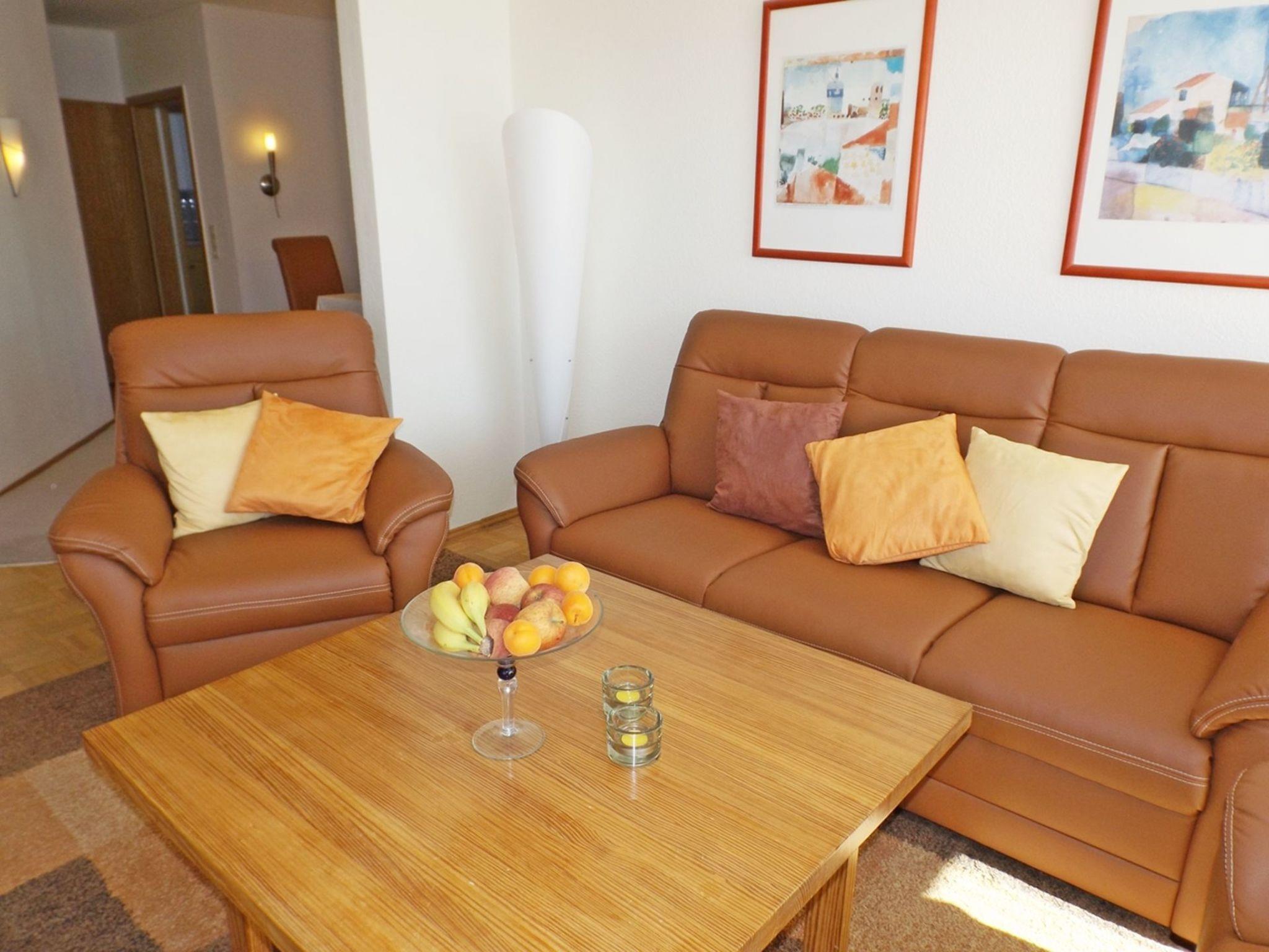We guarantee the greatest possible security and privacy with a separate entrance for each flat! This ground floor flat, about 55 m² in size, offers you a cosy living room with a view of the Bocksberg and its own terrace. Smart TV 108cm, radio/CD and DVD player. The spacious bedroom has a comfortable double bed with adjustable slatted frame. The fully equipped kitchen (4-ring hob, oven, microwave, coffee machine, etc.) invites you with a spacious dining area and the large daylight bathroom with shower/WC also leaves nothing to be desired. There is also a hallway, cloakroom and a storeroom. WLAN and safe are available free of charge. An extra bed for a small child is possible in this flat. There is a hotel swimming pool in the immediate neighbourhood (for a fee). Availability by arrangement!