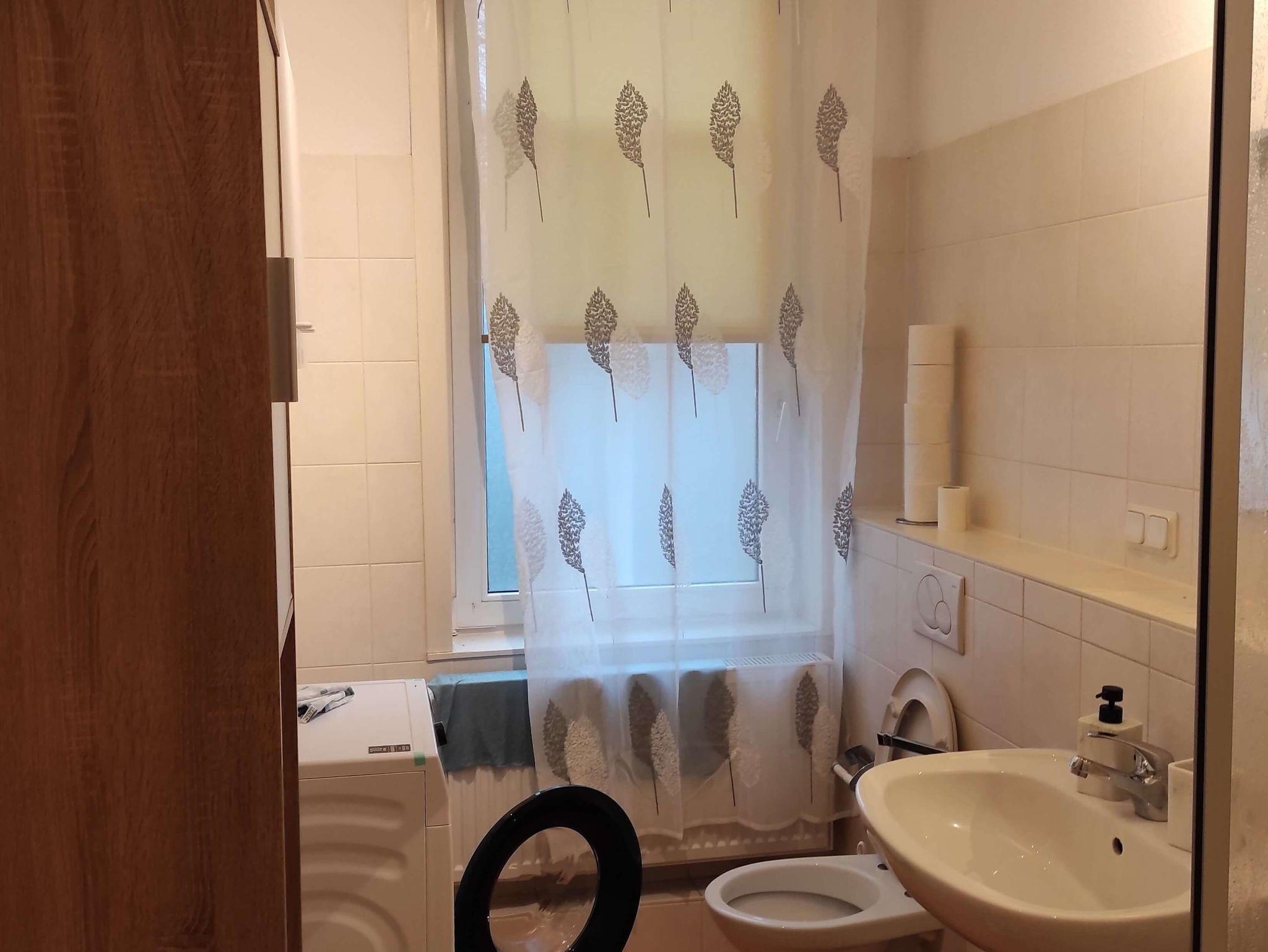 Das Badezimmer ist modern und funktional mit hochwertigen Sanitärinstallationen, einschließlich Waschbecken und Toilette. Bitte beachten Sie, dass unsere Wohnung eine Nichtraucherwohnung ist.