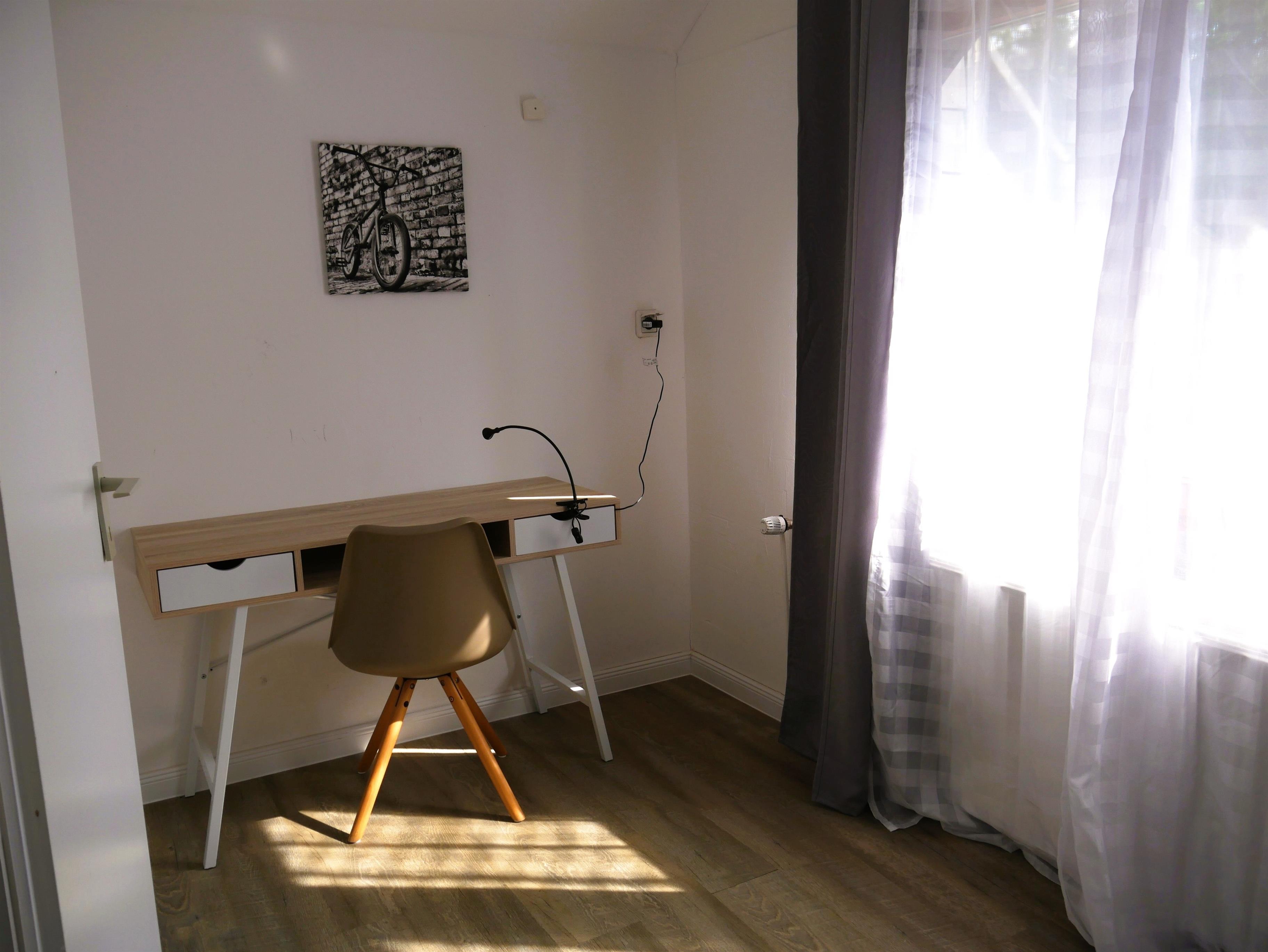 Das dritte Schlafzimmer im Obergeschoss ist bevorzugt für Kinder geeignet. Es besitzt ein kleines Bett in der Ecke des Raumes, wo sich Ihre Kleinsten gemütlich einkuscheln und verstecken können. Außerdem verfügt dieser Raum über einen Tisch, den die Kinder zum Schreiben, Malen oder Basteln verwenden können.