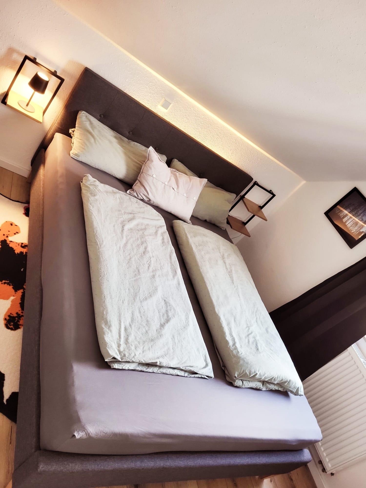Die für maximal 4 Personen (+ 1 Kleinkind/ Baby) ausgerichtete Wohnung verfügt über einen hellen und geräumigen Wohn-/ Essbereich, eine voll ausgestattete neue Küche, ein Schlafzimmer mit einem gemütlichen 160x200cm großen Bett (Bettdeckengrösse 2x 135x200, 2x Kissen 40x80), ein 150x220cm großes Schlafsofa (Bettdeckengrösse 2x 135x200, 2x Kissen 40x80) im Wohnbereich und ein Badezimmer mit großer Badewanne, um den erlebnisreichen Tag mit einem wohltuenden Bad ausklingen zu lassen.