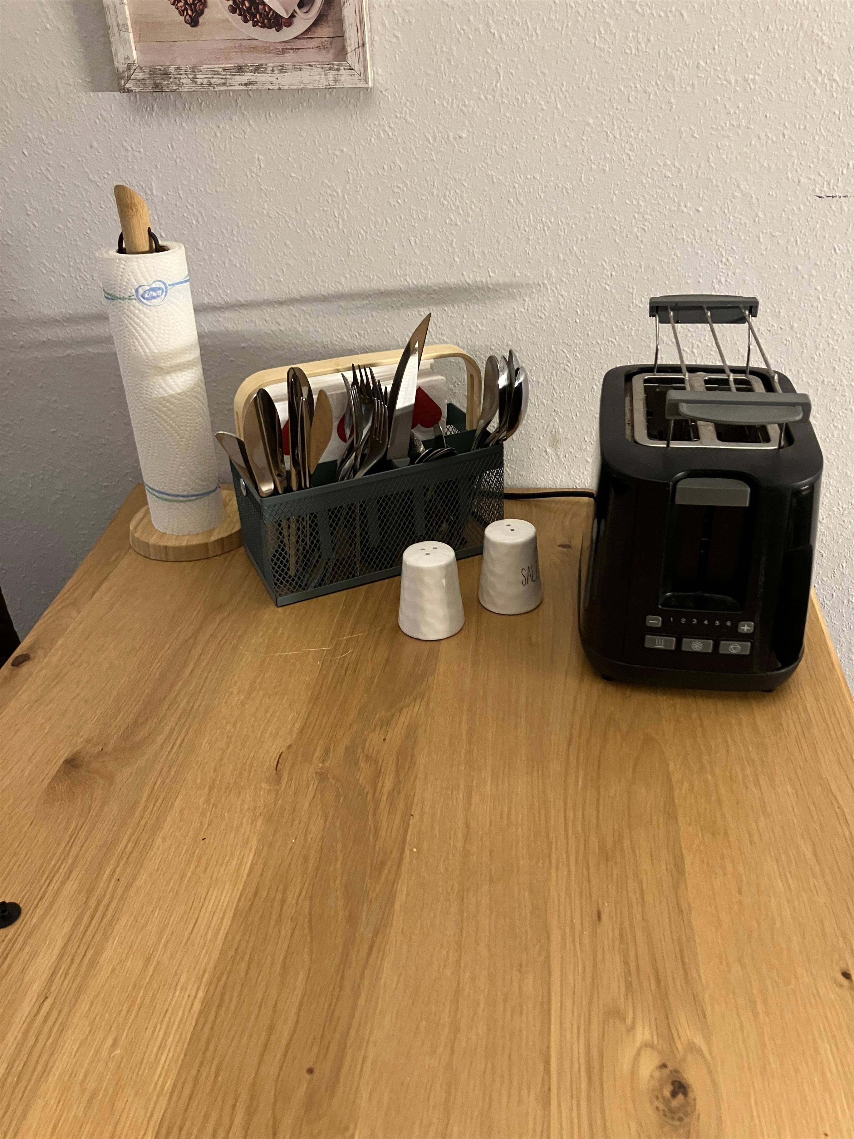 Die Küche ist mit einem Backofen und einem Ceran-Kochfeld ( Keine Induktion ) und einem Geschirrspüler ausgestattet.