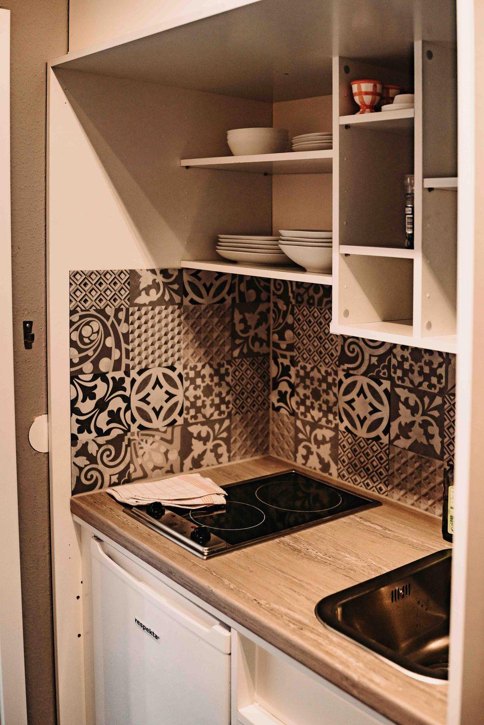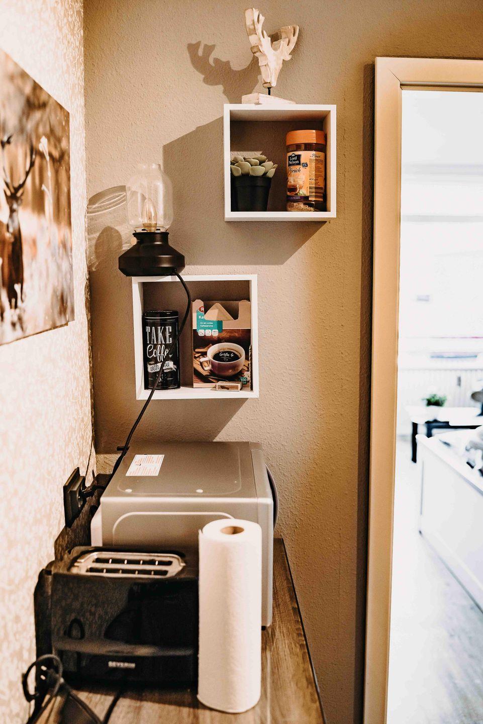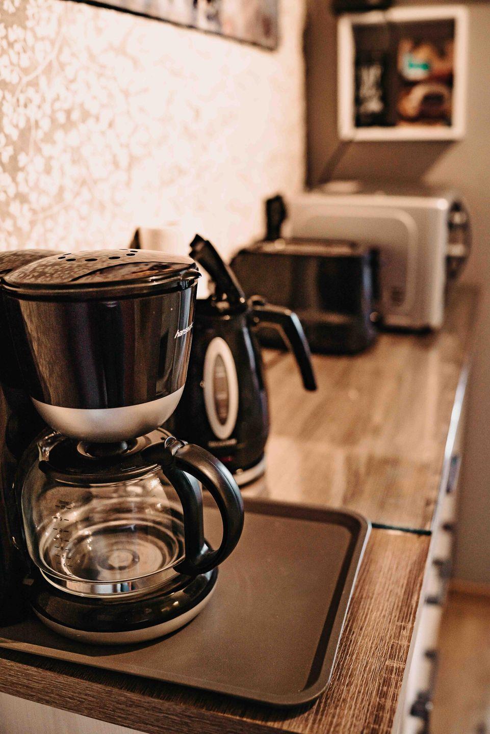 -Pantryküche inkl. 2-Plattenherd, Kühlschrank, Wasserkocher, Kaffeemaschine, Toaster