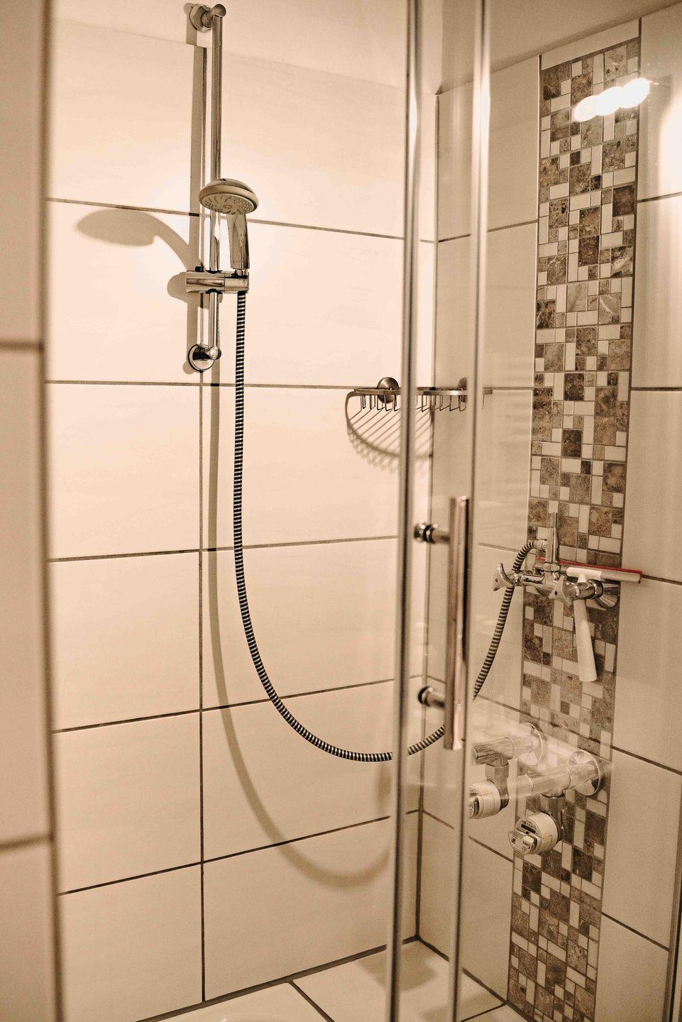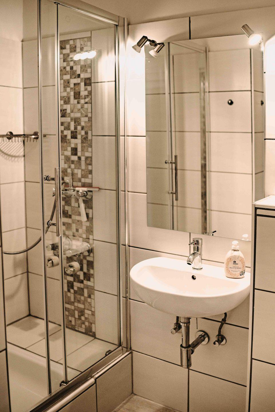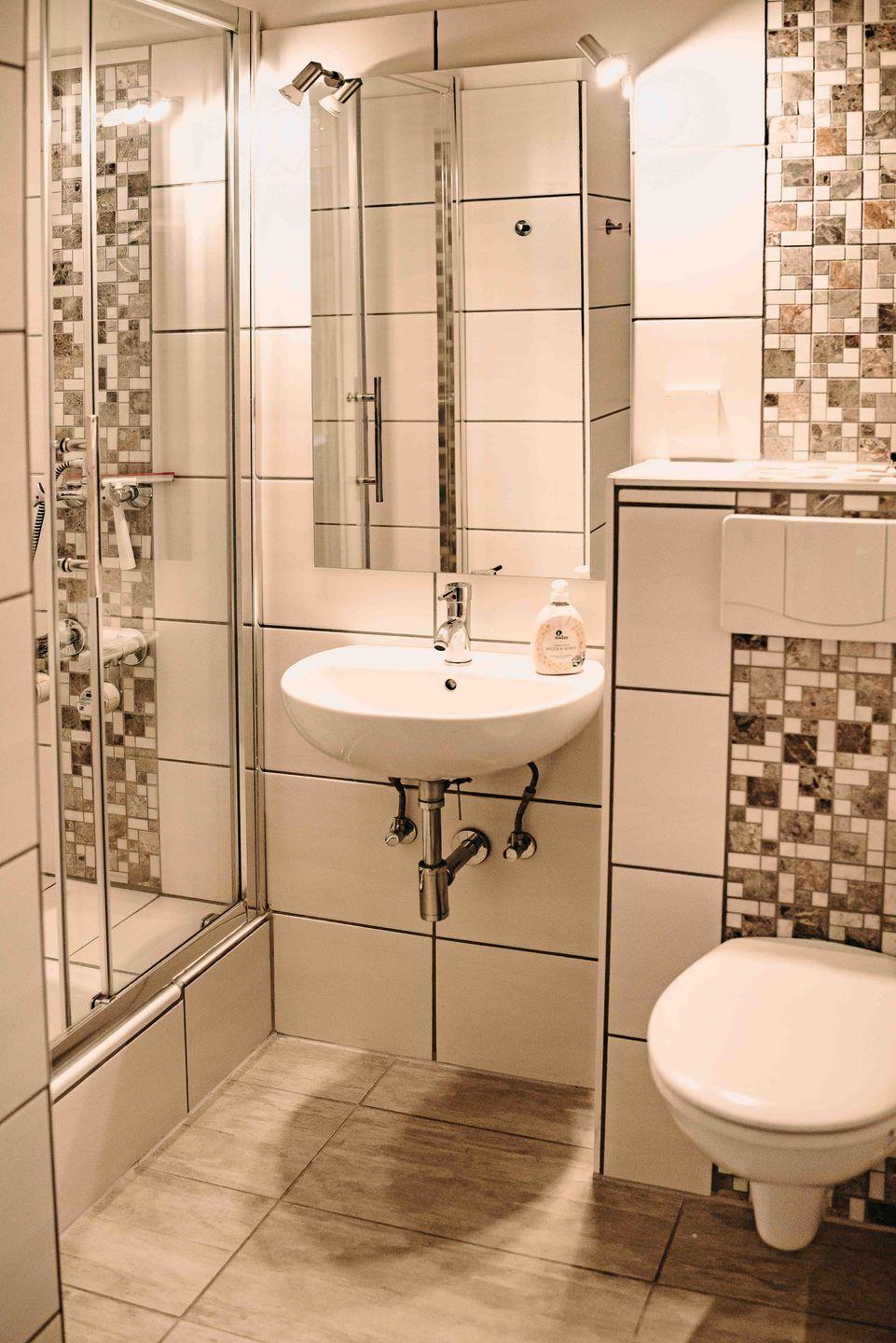 -Bad mit DU/WC, Fön, Kosmetikspiegel und Hygieneartikel