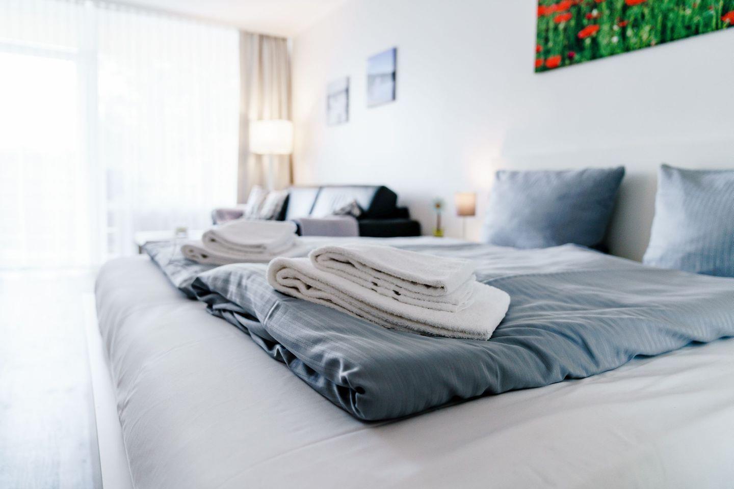 - Doppelbett 1,80x2m und Schlafcouch (Erstaustattung Bettwäsche & Handtücher)