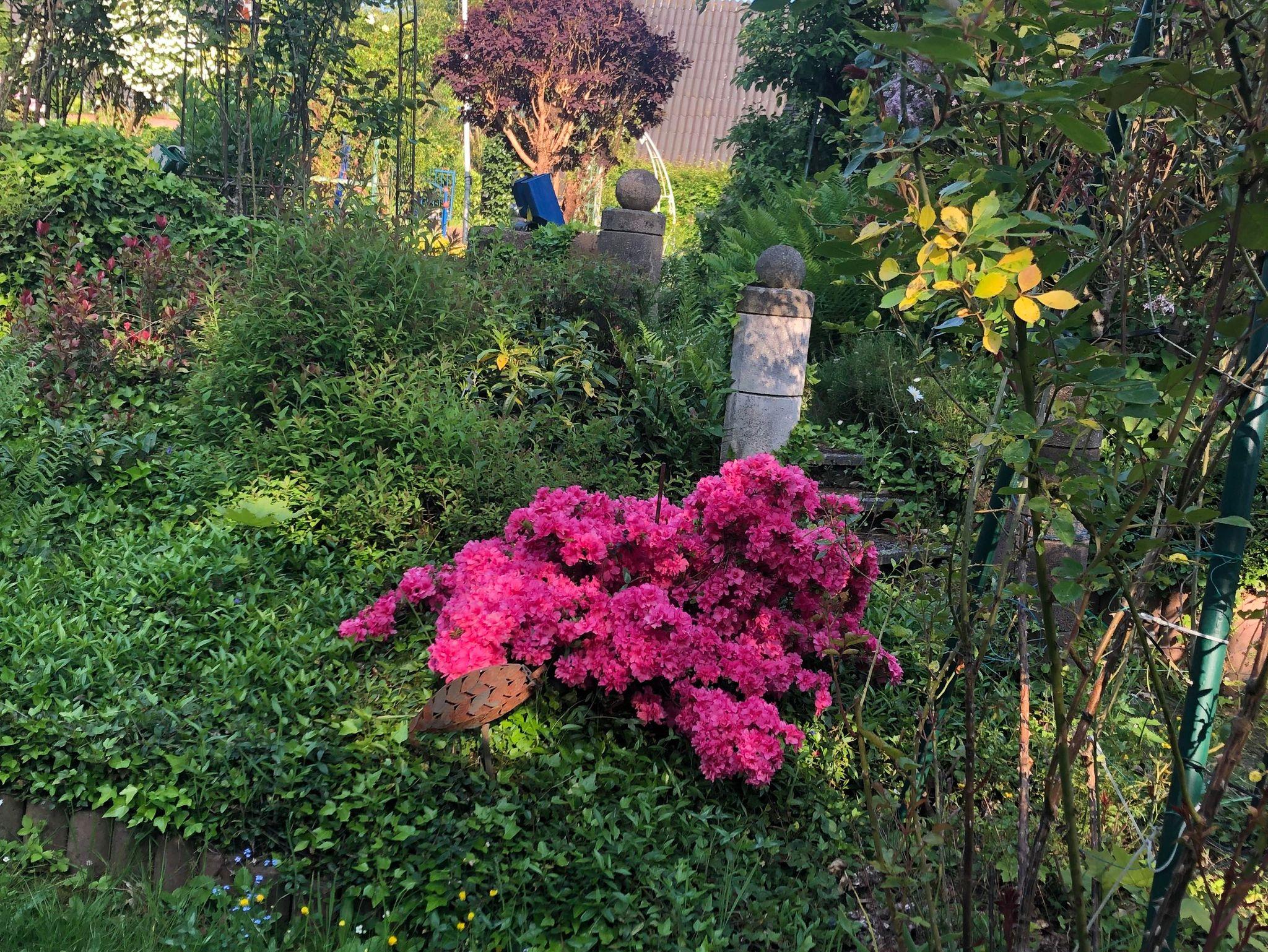 Die große sonnige Terrasse und liegewiese mit Gartenmöbeln lädt zum Erholen ein.