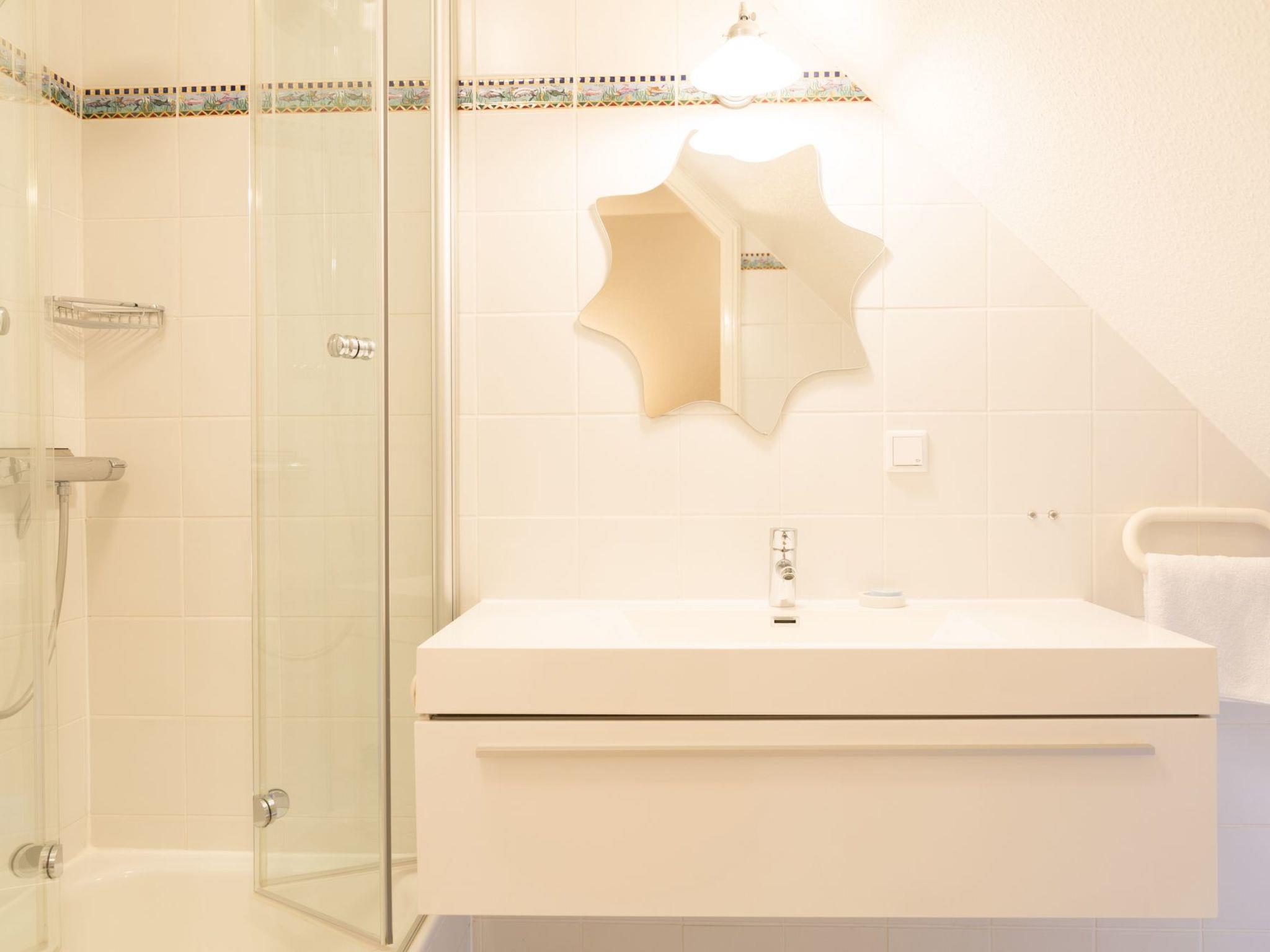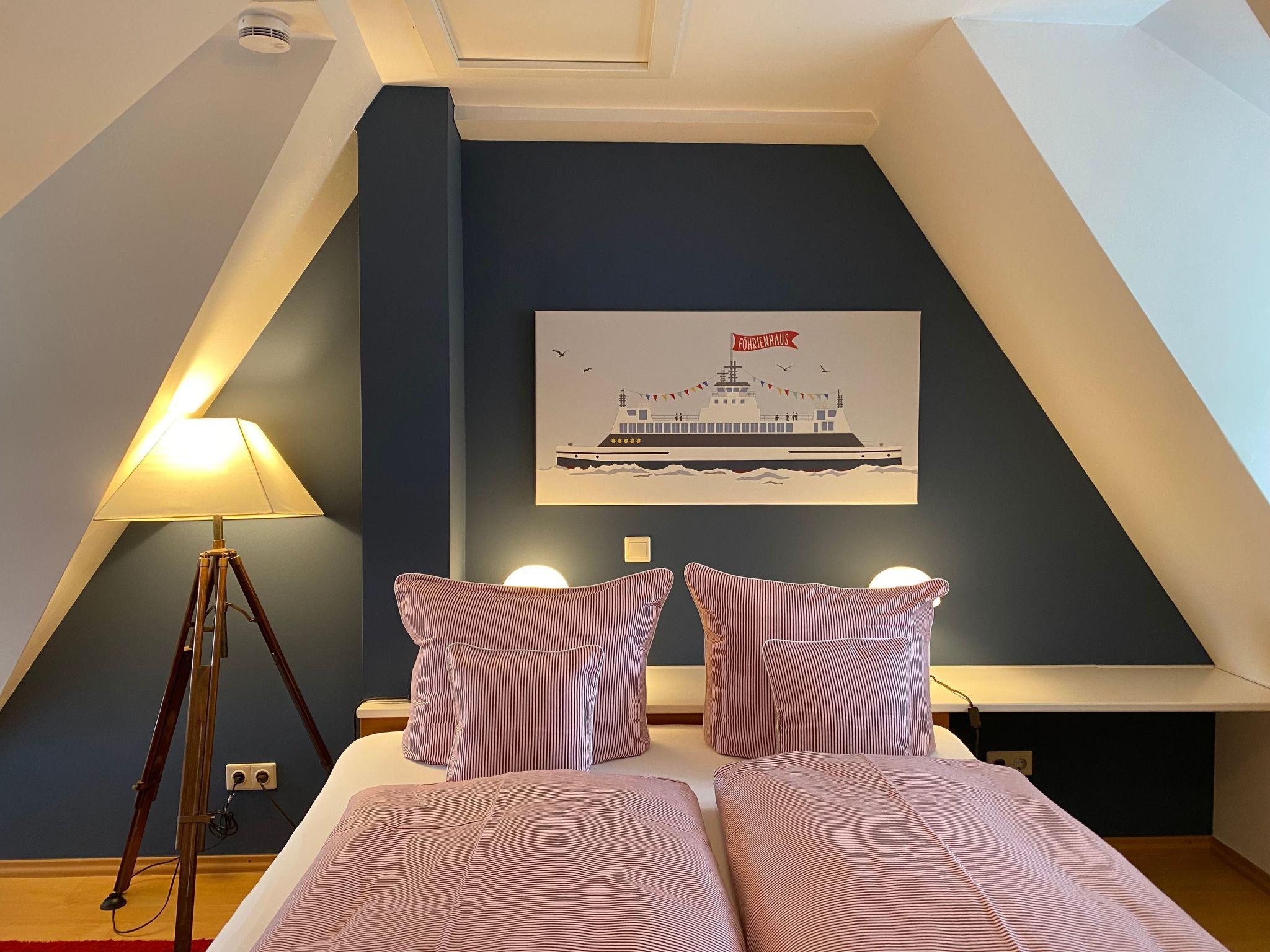 This part of the house is located on the outskirts of Midlum - in the middle of the island, as the name suggests - directly on the marsh with its wide fields. Sheep, cows and horses are our neighbours here when they graze on them from spring onwards. The village is still mostly home to locals with their pretty houses and well-tended gardens. Our house is an ideal starting point for bicycle tours, long walks or shopping in Wyk, the largest town on our island.