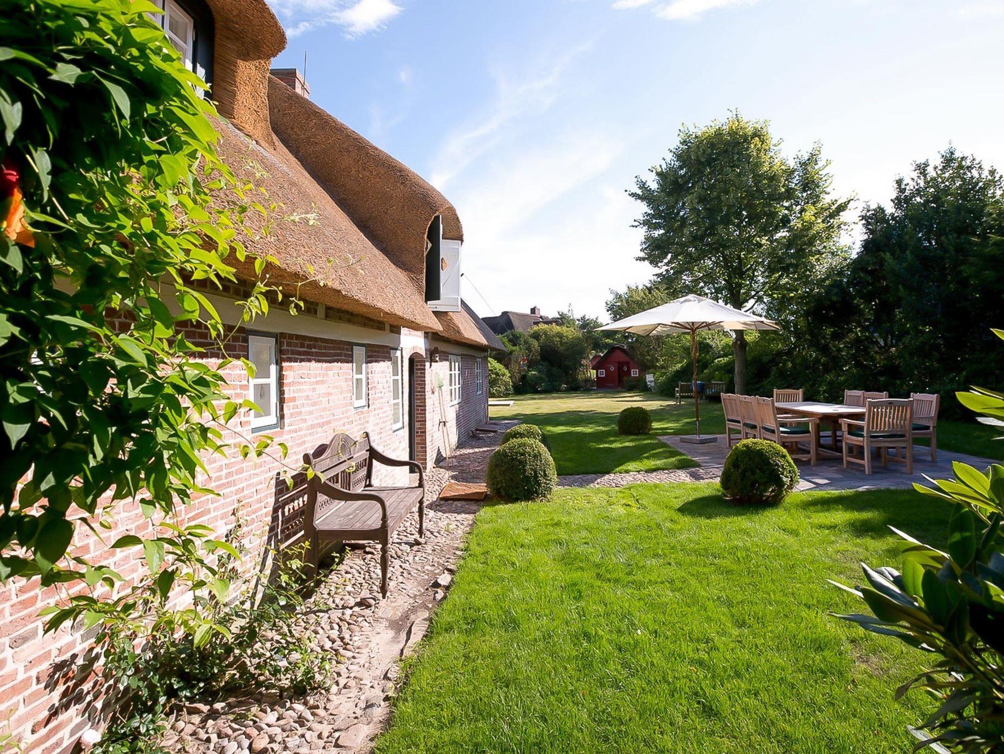Herrlich gelegen bietet der Reethof PUK das Refugium für Ihren Urlaub in jeder Jahreszeit. Das denkmalgeschützte Reetdachhaus steht auf einem eingewachsenen, über 1.000 qm großen, sonnigen Grundstück. In fußläufiger Nähe befindet sich das Goting Kliff mit seinem schönen Strand und nach Nieblum ist es auch nur ein kurzer Weg. .Das Haus wurde geschmackvoll saniert und besticht nun durch die Kombination von alten friesischen Elementen und zeitgemäßem, nordischen Wohngefühl. So wurden die Bäder hochwertig saniert, eine große Terrasse angelegt und ein Kamin eingerichtet. Die alten Delfter Kacheln, Dielen, Türen und Holzbalken wurden mit viel Liebe restauriert. Ob zu siebt oder zu zweit, mit Kindern oder Freunden - genießen Sie sonnige Stunden im Garten oder das Feuer im Kamin. Ein Saunahaus mit Vordeck erhöht den Wellnessfaktor im Reethaus Puk und lädt zum puren Entspannen ein.