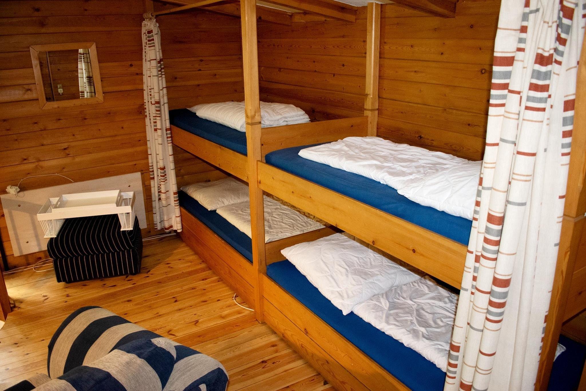 Stueetage: (åbent køkken(kakkelovn(gas), kaffemaskine, ovn, opvaskemaskine , køleskab), stue / spisestue(Fjernsyn(parabol), radio), badeværelse(badekar, bruser, toilet)) På 1. etage: (Stue/soveværelse(dobbeltseng, 2x køjeseng)) balkon, varme(elektrisk), terrasse, parkering, barnestol, baby crib(free)