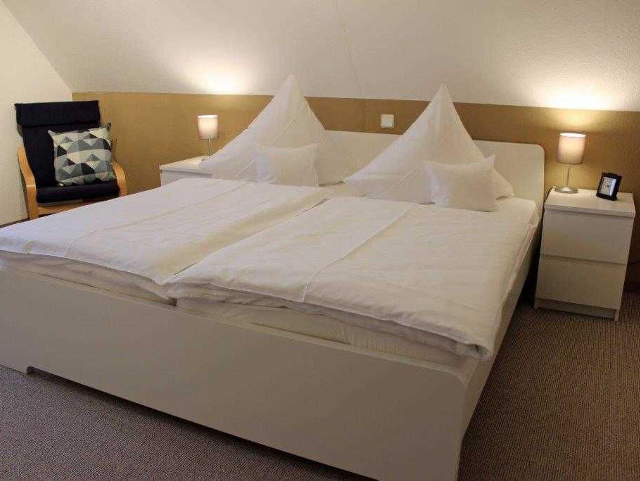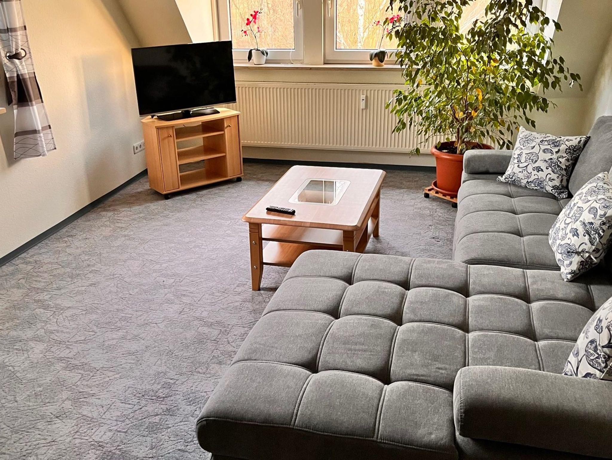 Die Ferienwohnung verfügt auf zwei Stockwerken über ein großes, helles Wohnzimmer, eine voll ausgestatteten Küche mit Sitzecke und einem Bad mit Badewanne und WC. In der oberen Etage finden Sie ein Schlafzimmer mit Doppelbett und ein weiteres Zimmer mit zwei Einzelbetten, sowie ein separates WC. Das Aufstellen eines Kinderbettes ist in beiden Schlafzimmern möglich. Täglich frische Brötchen auf Anfrage vor Ort.