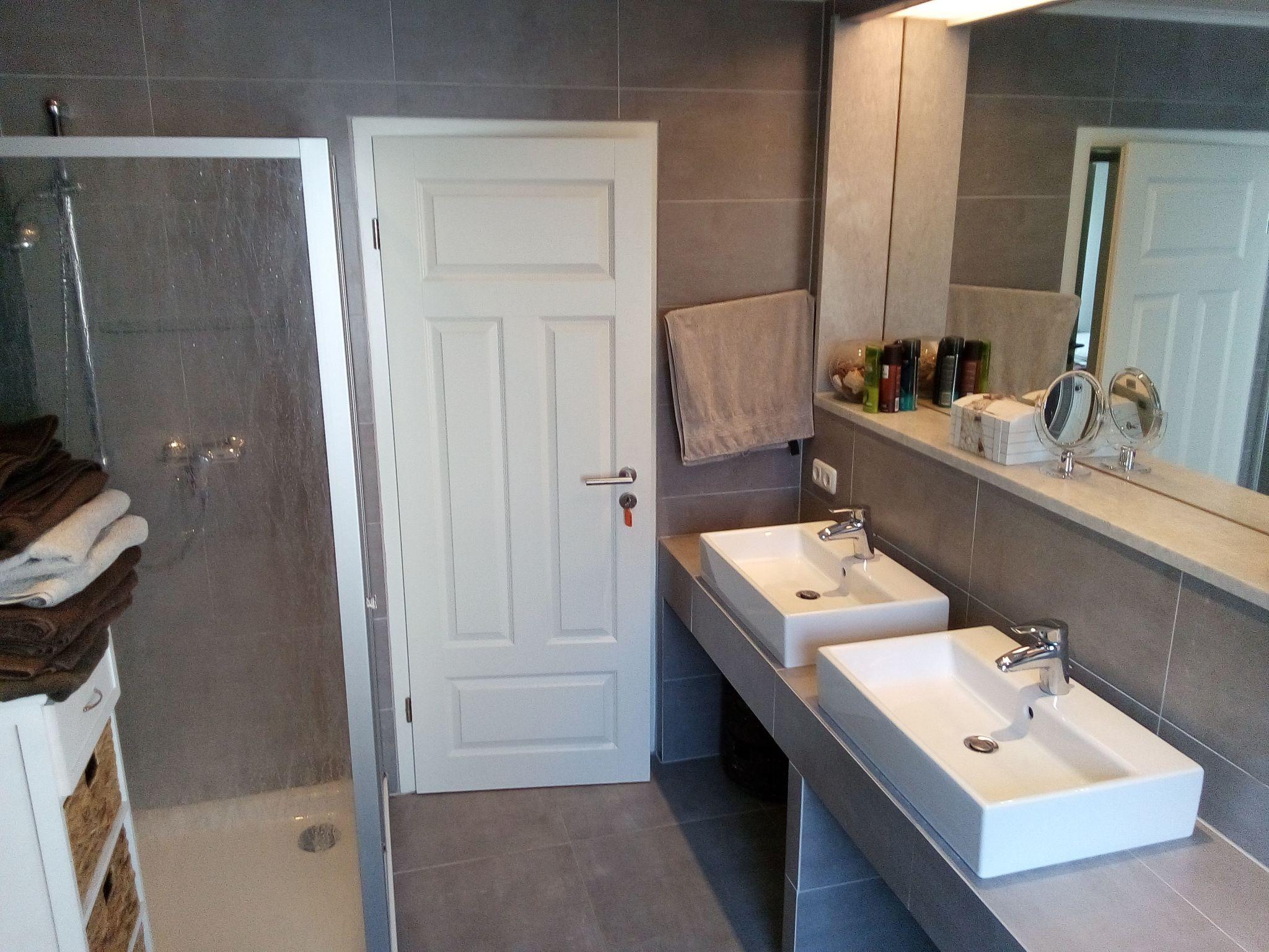 In addition to the spacious bathroom with toilet, bathtub, shower and 2 washbasins, there is also a separate guest WC with toilet and washbasin.