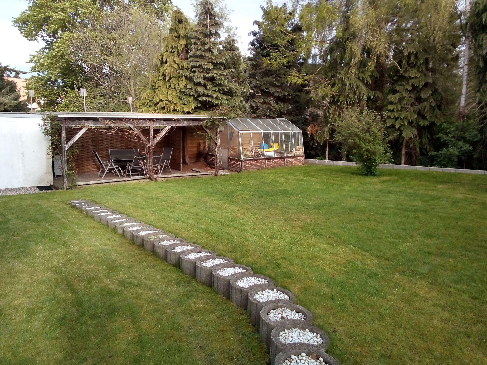 Spacious garden with covered veranda for communal use.