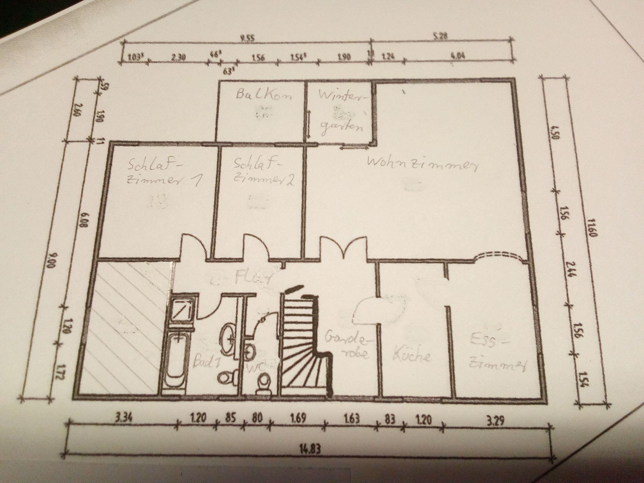 The flat is on the first floor of a large detached house. On the ground floor there are three small, permanently rented granny flats.