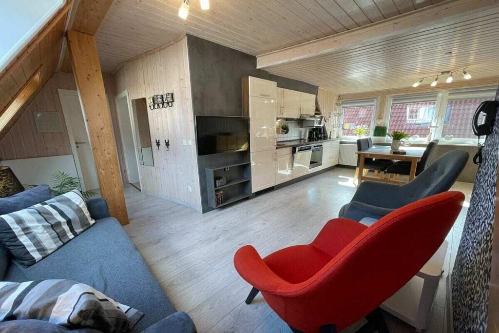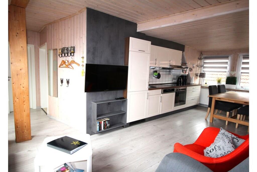 På 1. etage: (stue / spisestue(, , , Fjernsyn, spisebord, radio, CD-afspiller, kogeplade, elkedel, brødrister, kaffemaskine, ovn, mikrobølgeovn, opvaskemaskine , køleskab), soveværelse(, dobbeltseng, Fjernsyn), soveværelse(, enkeltseng, enkeltseng, Fjernsyn)) Loft: (badeværelse(, toilet, håndvask)) , , badeværelse(, toilet, bruser, håndvask), Internetadgang, varme, terrasse(havemøbler, Haveskur)