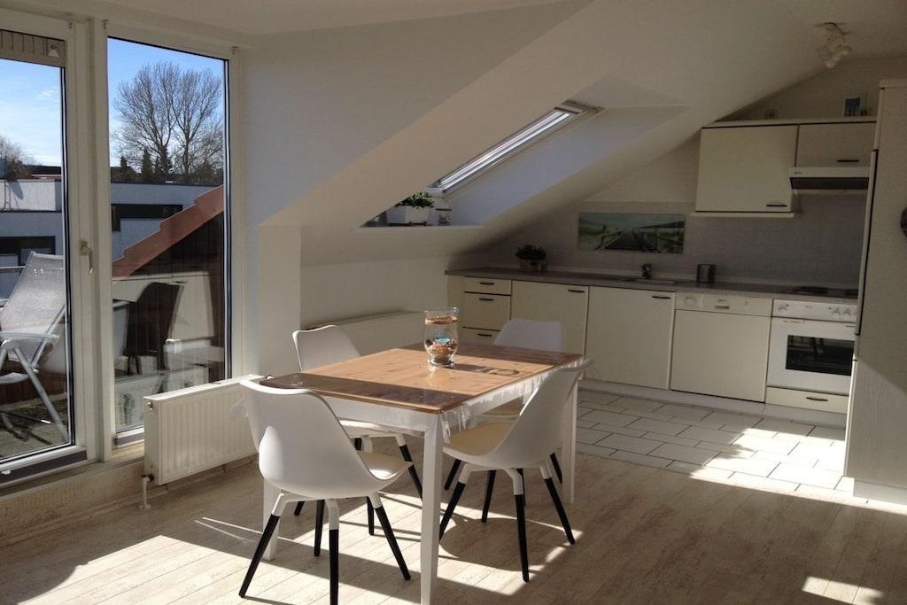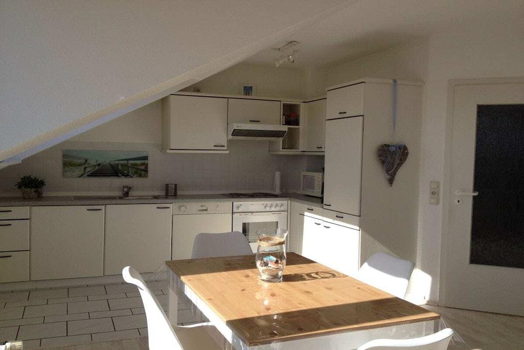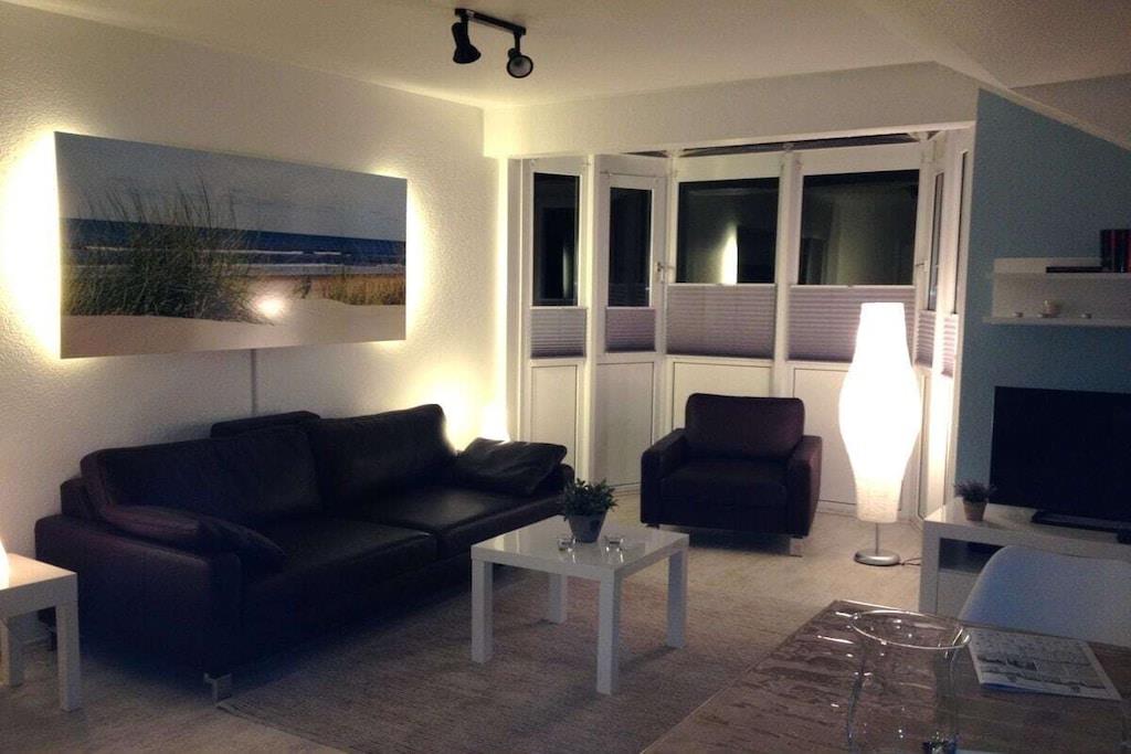 Komfortabel ferielejlighed til op til 4 personer. Udover en rummelig kombineret stue/spisestue finder du et moderne køkken med opvaskemaskine og mikrobølgeovn samt et rummeligt badeværelse. Lejligheden har to separate soveværelser. Der er installeret et 39-tommer fladskærms-tv i stuen og soveværelset. Der er internetadgang til fast pris. Fra stuen er der en syd-/vestvendt altan. På en klar dag kan du se Østersøen fra morgenmadsbordet. En samling af bøger, spil og dvd'er samt en højstol og rejseseng er tilgængelige. Parkering er tilgængelig lige foran huset. Ikke-ryger lejlighed, ingen kæledyr tilladt. Lejligheden blev renoveret i 2021 (nyt badeværelse, nye døre osv.).