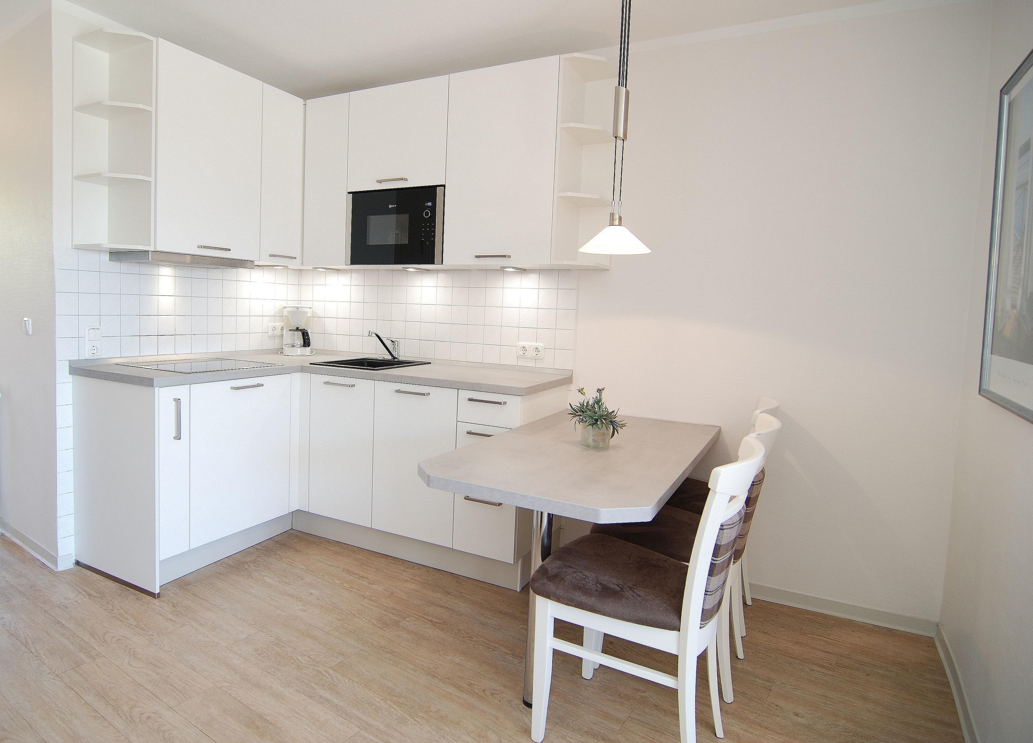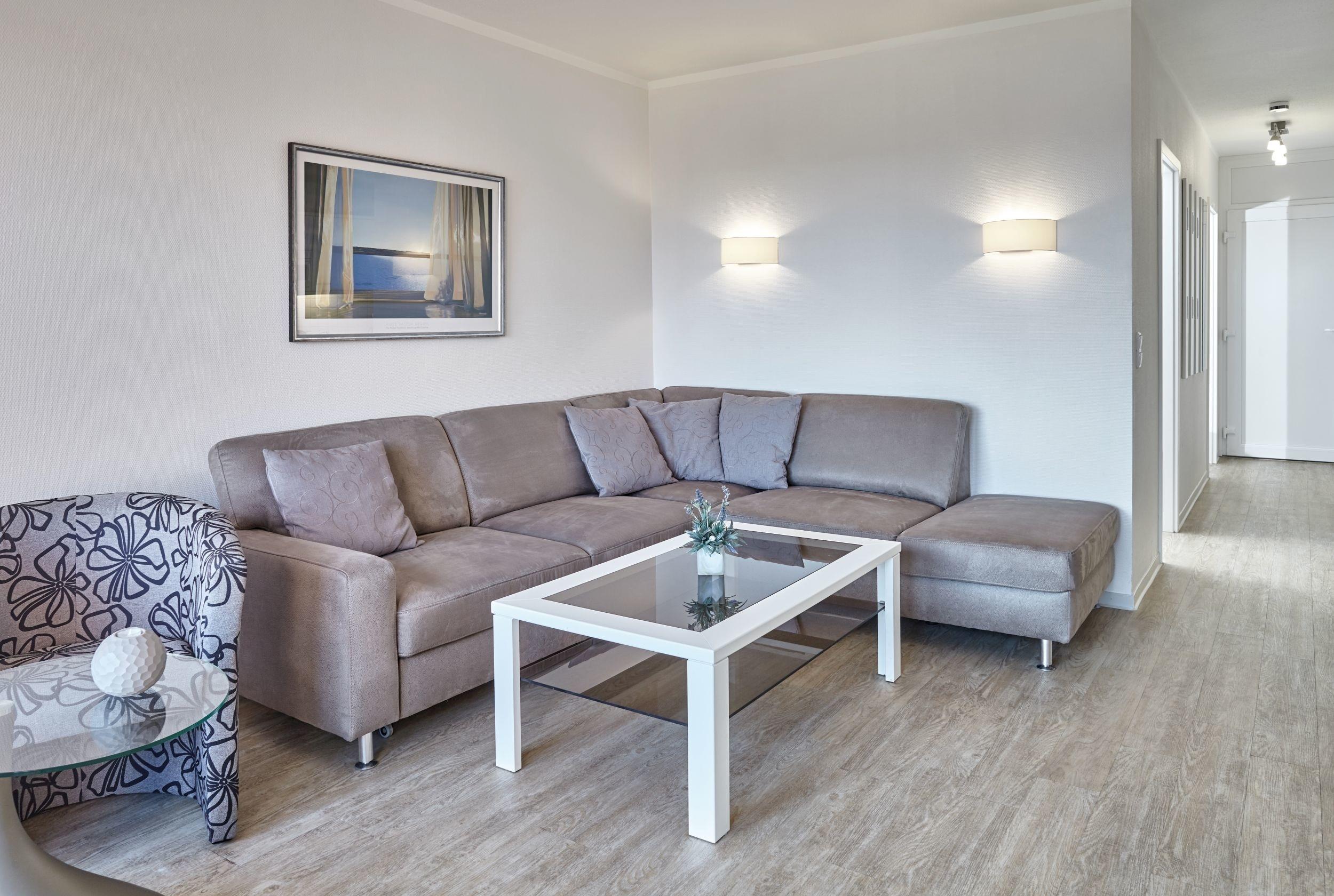 Schicke 2-Zimmer-Nichtraucherwohnung für bis zu 3 Personen mit großem Südbalkon im Hochparterre gelegen. Die Wohnung hat einen leicht seitlichen Seeblick. Sie wurde Ende 2013 renoviert und neu möbliert. Entgegen der Grundrisszeichnung hat sie ein Schlafzimmer mit Doppelbetten und im Wohnzimmer eine Schlafcouch. Sonderausstattung: Geschirrspüler, Mikrowelle und Markise.
