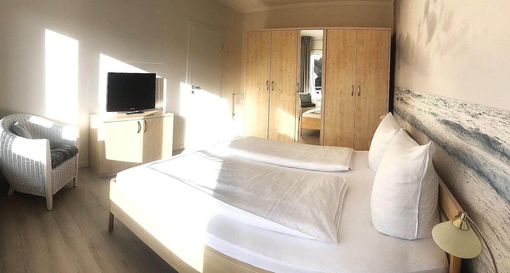 Zum Frühjahr 2021 kompl. neu sanierte und komfortabel eingerichtete 2-Zimmer-Nichtraucherwohnung im 2. Geschoss mit W-Lan, Südbalkon und seitlichem Seeblick.