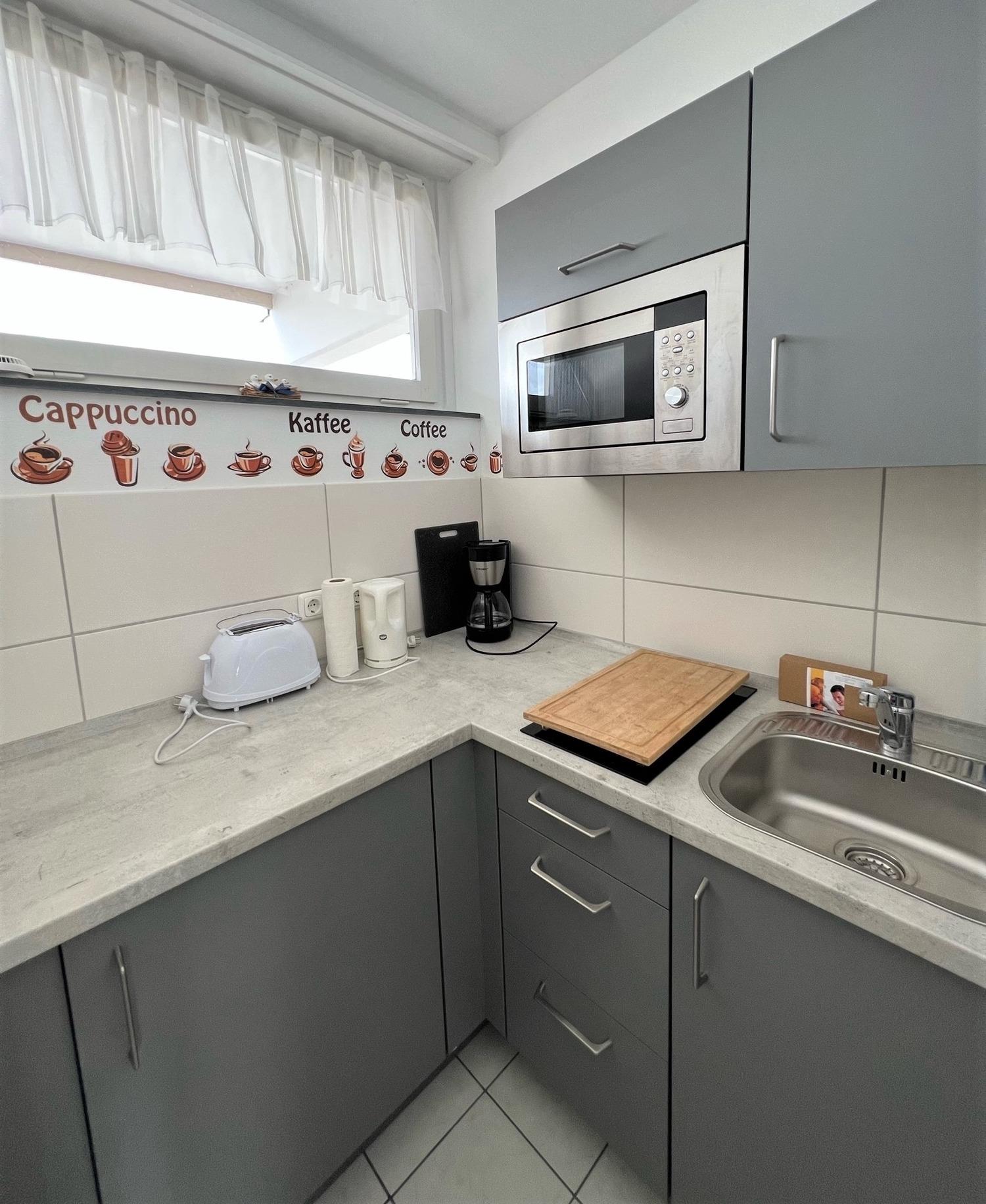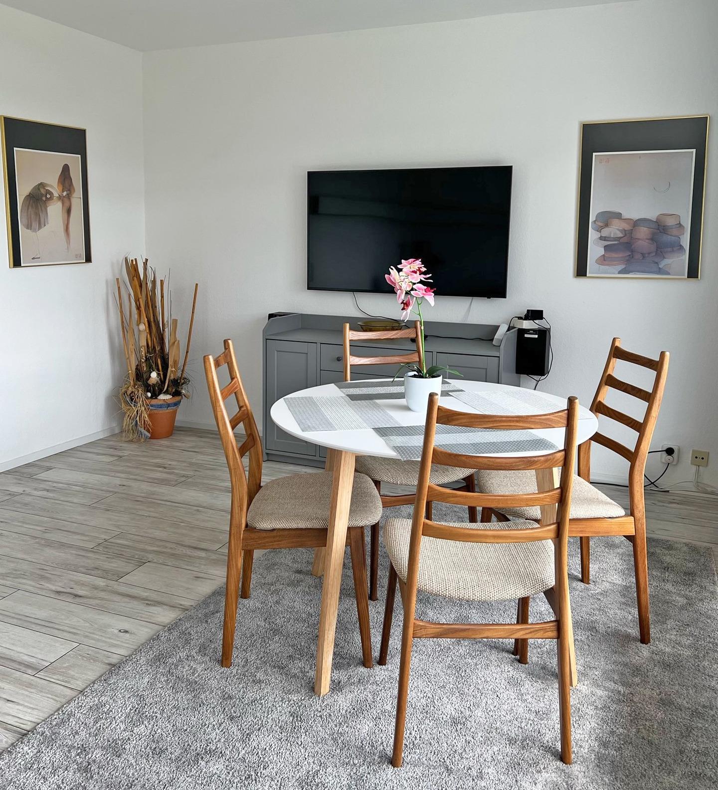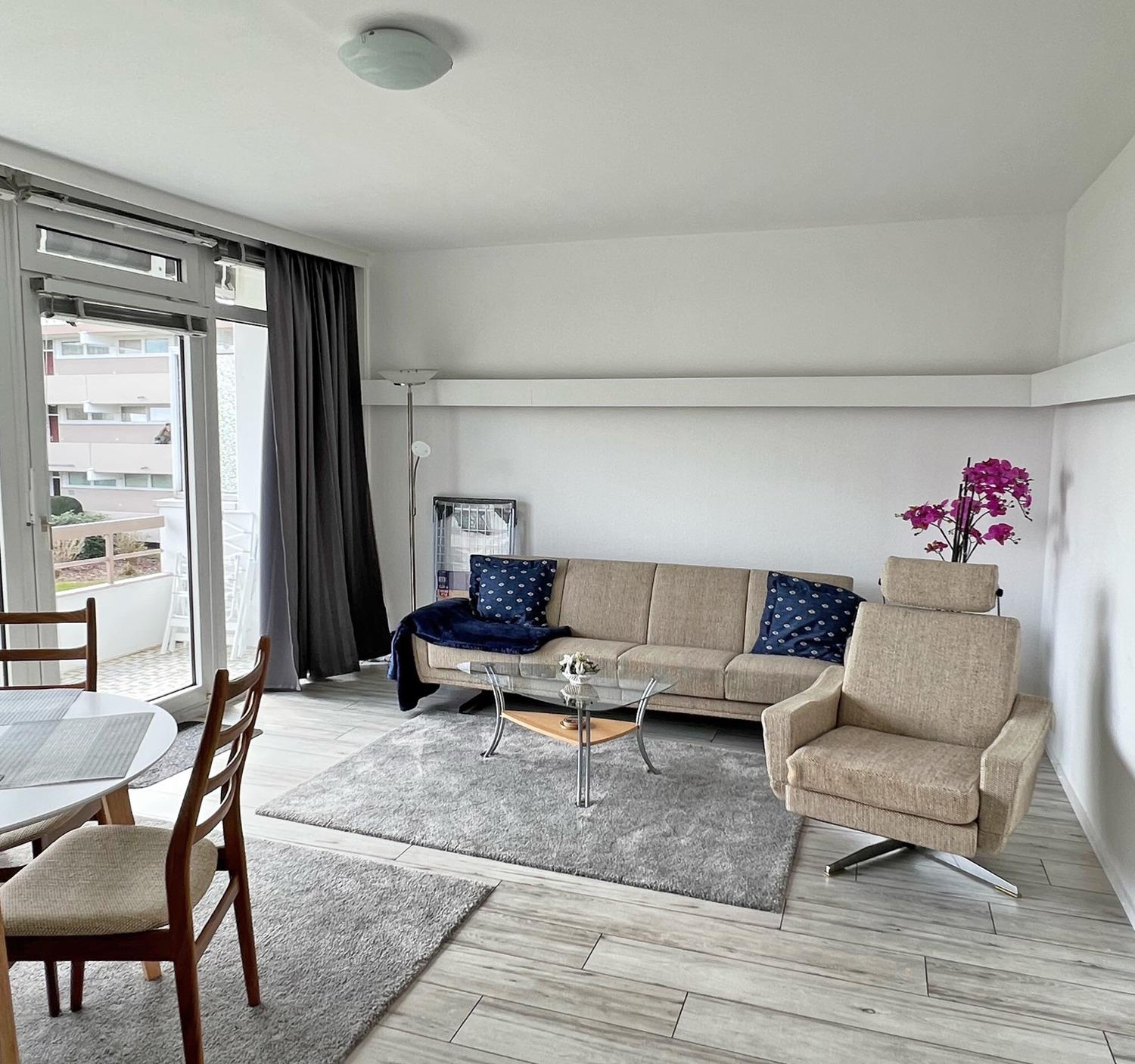 Moderne, frisch renovierte 2-Zimmer-Ferienwohnung im Hause Baltic. Die Wohnung befindet sich im 1. Stock mit Balkon; Sonne fast den ganzen Tag mit Blick zum Deich; in den kälteren Monaten mit Teilblick zum Meer, direkt hinter dem Deich, wenige Schritte zum Strand. Hunde gerne auf Anfrage (Gebühren).
