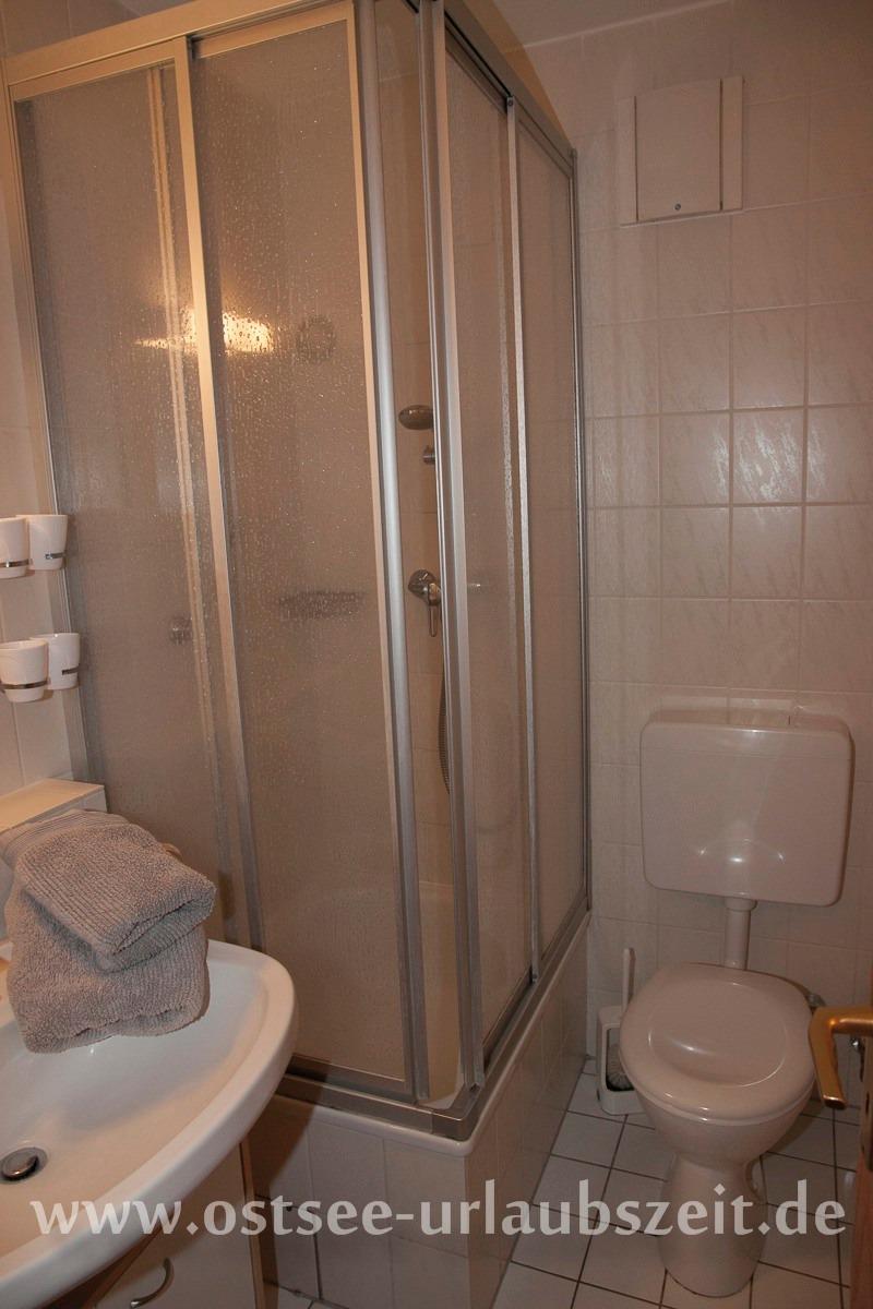 Das Bad besteht aus Dusche und WC, sowie einem seperaten Schlafzimmer mit einem Doppelbett.
