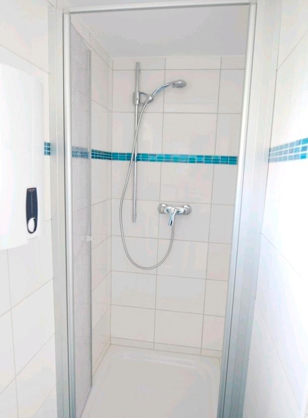 Unser kleines low-budget Appartement unterteilt sich in einen Raum mit Pantryküche und Essplatz, den Sie durch die Eingangstür betreten. Klapptisch, 2 Stühle, Küchenzeile mit 2 Ceranfeldern, Schränken, Mikrowelle mit Grill und Backofenfunktion und Kühlschrank mit Gefrierfach auf der einen, Spüle mit Geschirrspüler auf der anderen Seite des Raumes. Von hier geht es in das kleine Badezimmer mit Spiegelschrank, Eck-WC, Handtuchheizkörper und Duschkabine. Vom Ess-/Küchenbereich offener Durchgang in das Schlafzimmer mit Doppelbett 160x200 (2 Einzelmatratzen 80x200), Flachbild-Kabel-TV mit Wandhalterung dem Bett gegenüber, USB und Festplatten/Notebook-Anschluß, 2 Cocktailsessel in schwarz mit kleinem Beistelltisch, Kleiderschrank in 100 cm Breite Front türkis-hochglanz, weiterer Stauraum durch 4 ausziehbare Bettkästen. Plissees in den Fenstern, Vorhänge bzw Raffrollo mit Verdunkelungsfunktion. WLAN, Freisitz/Terrasse in Südlage mit kleiner Rasenfläche, Gartenmöbel/Sonnenschirm. Designbodenbelag in eleganter nautischer Holzoptik.