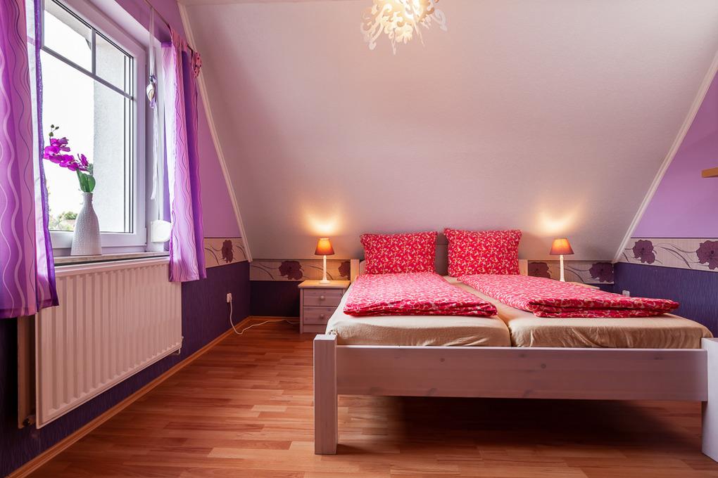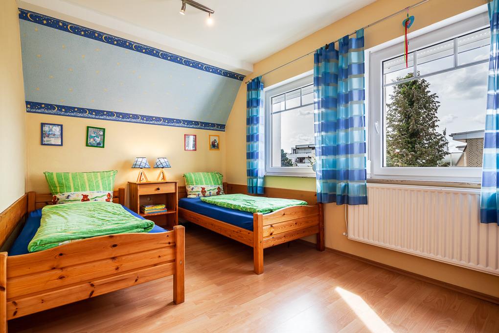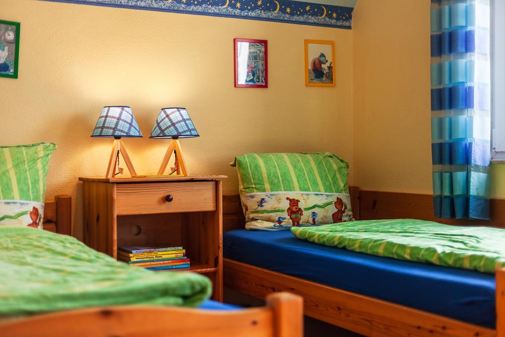 Das Eltern- und Kinderschlafzimmer befinden sich im 1.Stock des Ferienhauses. Im großen Elternschlafzimmer übernachten Sie in einem gemütlichen französischen Bett (160x200). Im Kinderzimmer finden Sie zwei bequeme Einzelbetten (90x200). Eine bequeme Schlafcouch dient hier als zusätzliche Aufbettungsmöglichkeit, z. B. für ein drittes Kind.