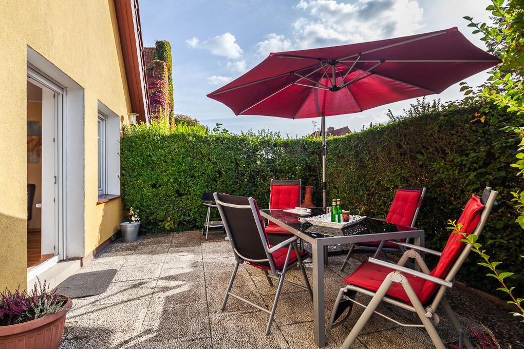 2 komfortable Terrassen mit ausreichenden Sitz- und Liegemöglichkeiten laden zum Morgenkaffee, zum windgeschützten Mittagsschläfchen oder zum gemütlichen Grillabend ein.