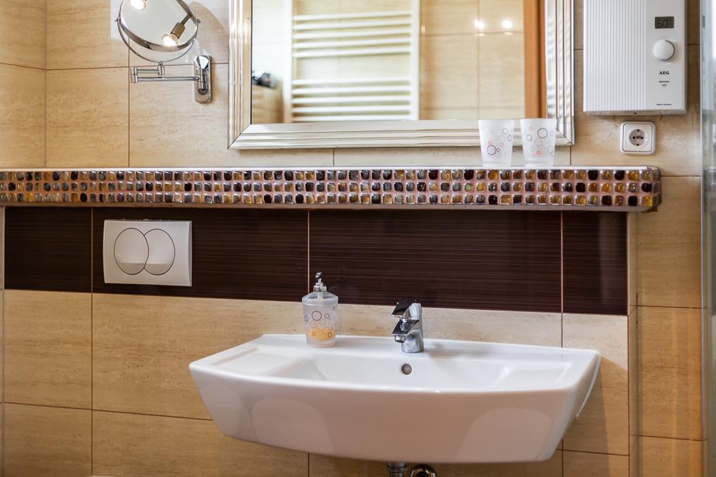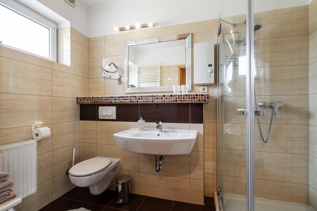 Im Erdgeschoss des Hauses befindet sich unser geräumiges Familien-Duschbad mit WC und Fenster. Für Kinder aber auch für Senioren haben wir Ihnen hier adäquate Hilfshocker bereitgestellt. Ein weiteres Gäste-WC mit Fenster finden Sie ebenfalls im EG.