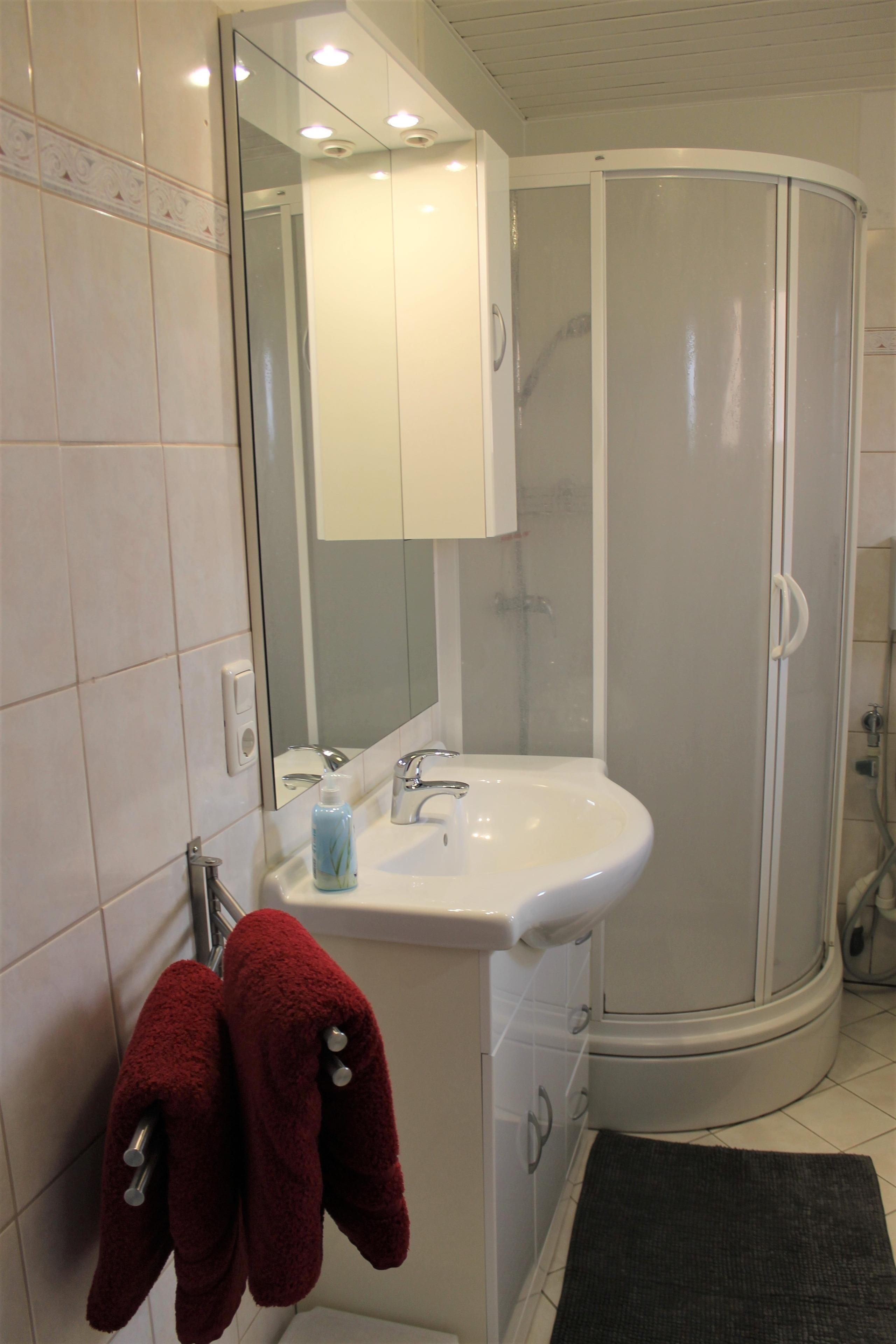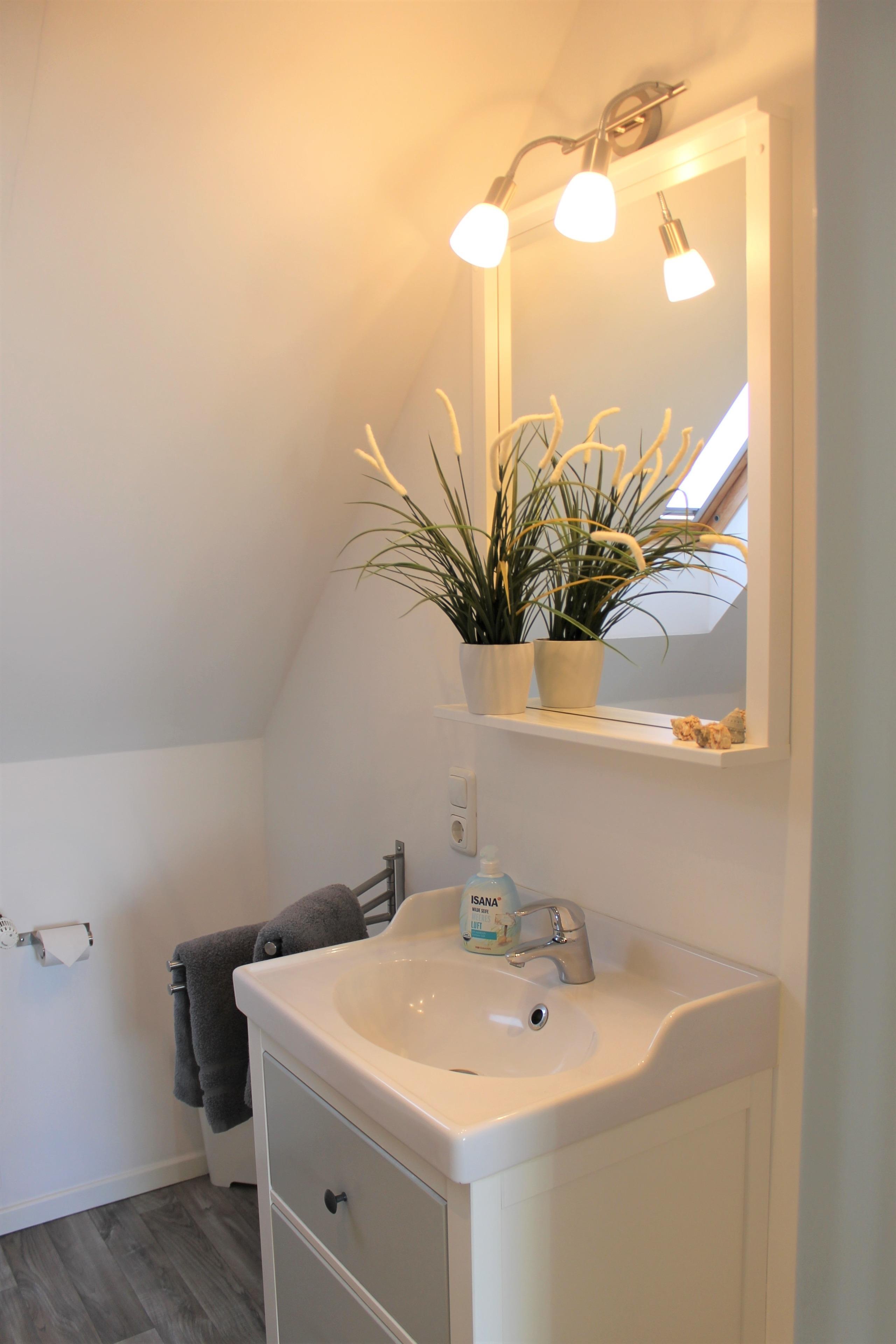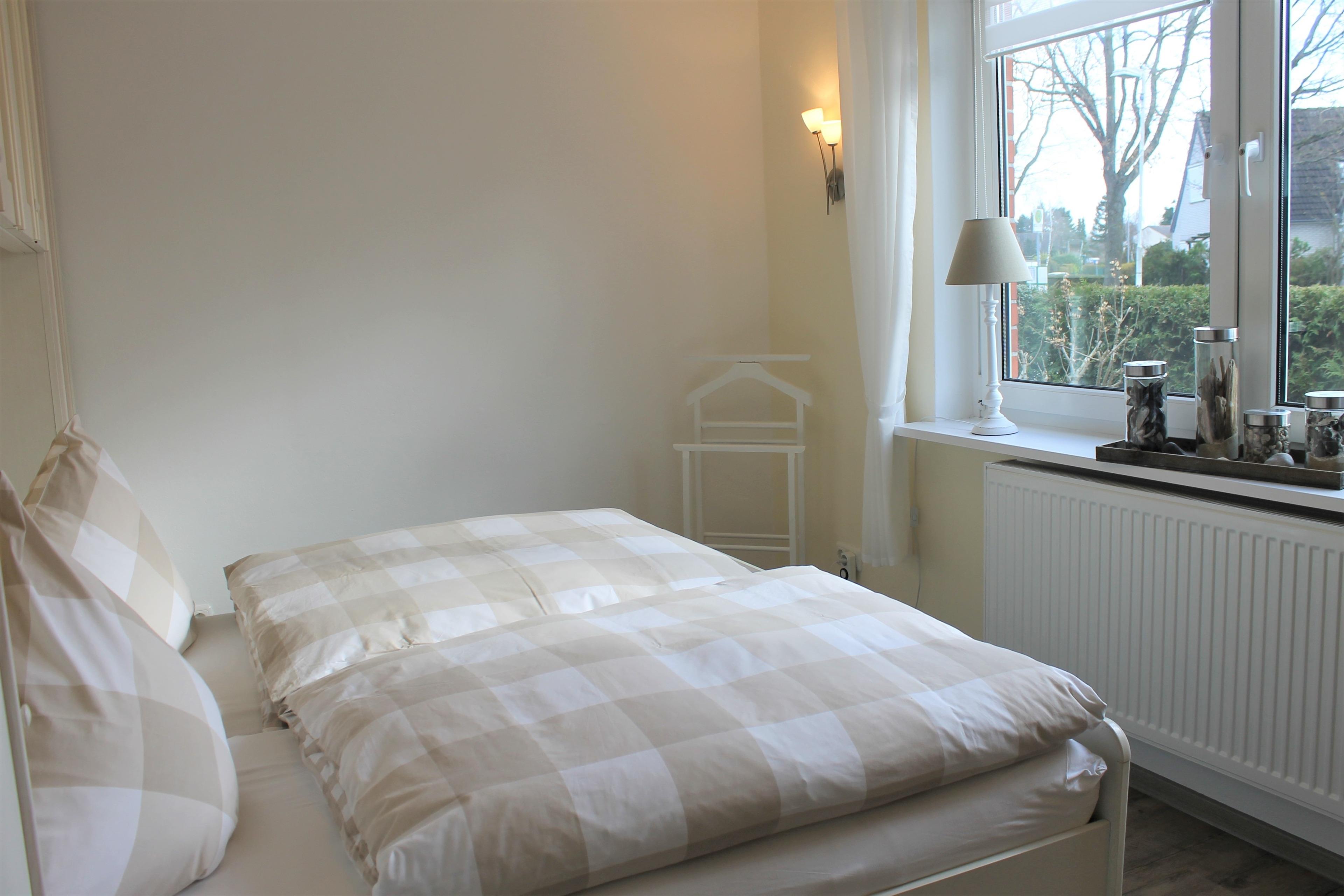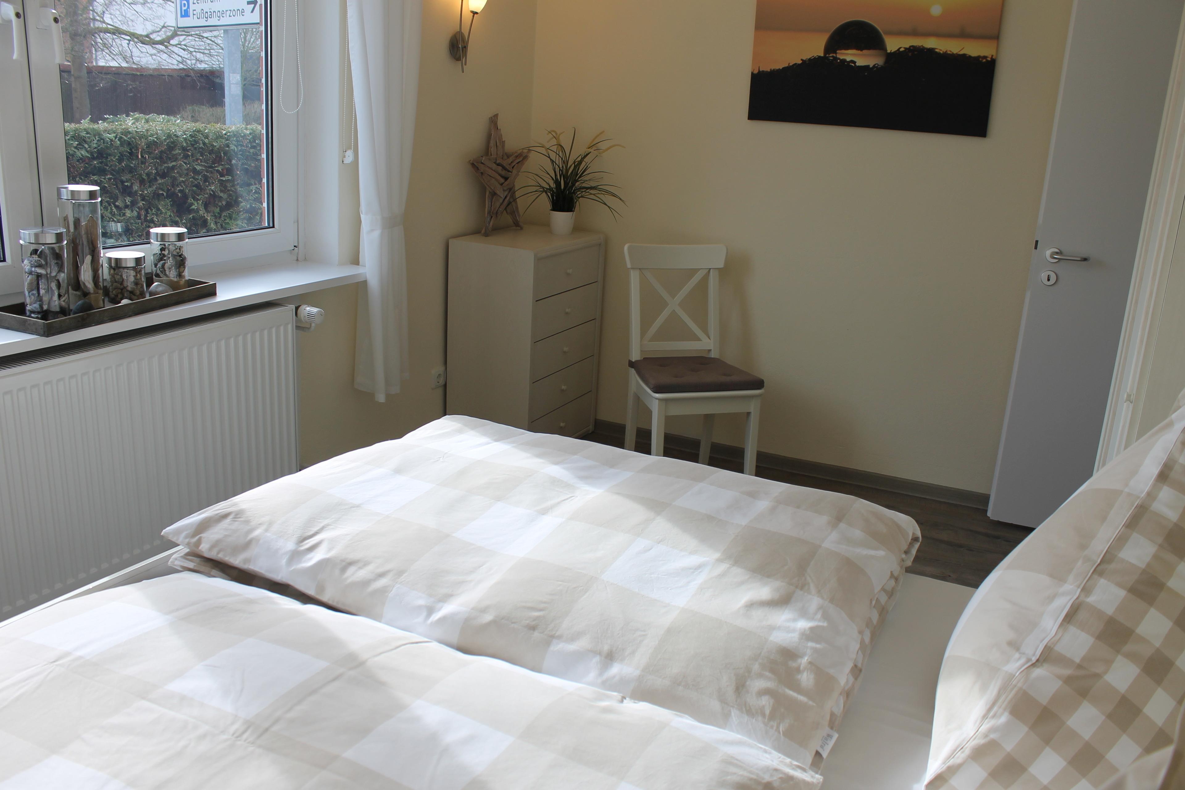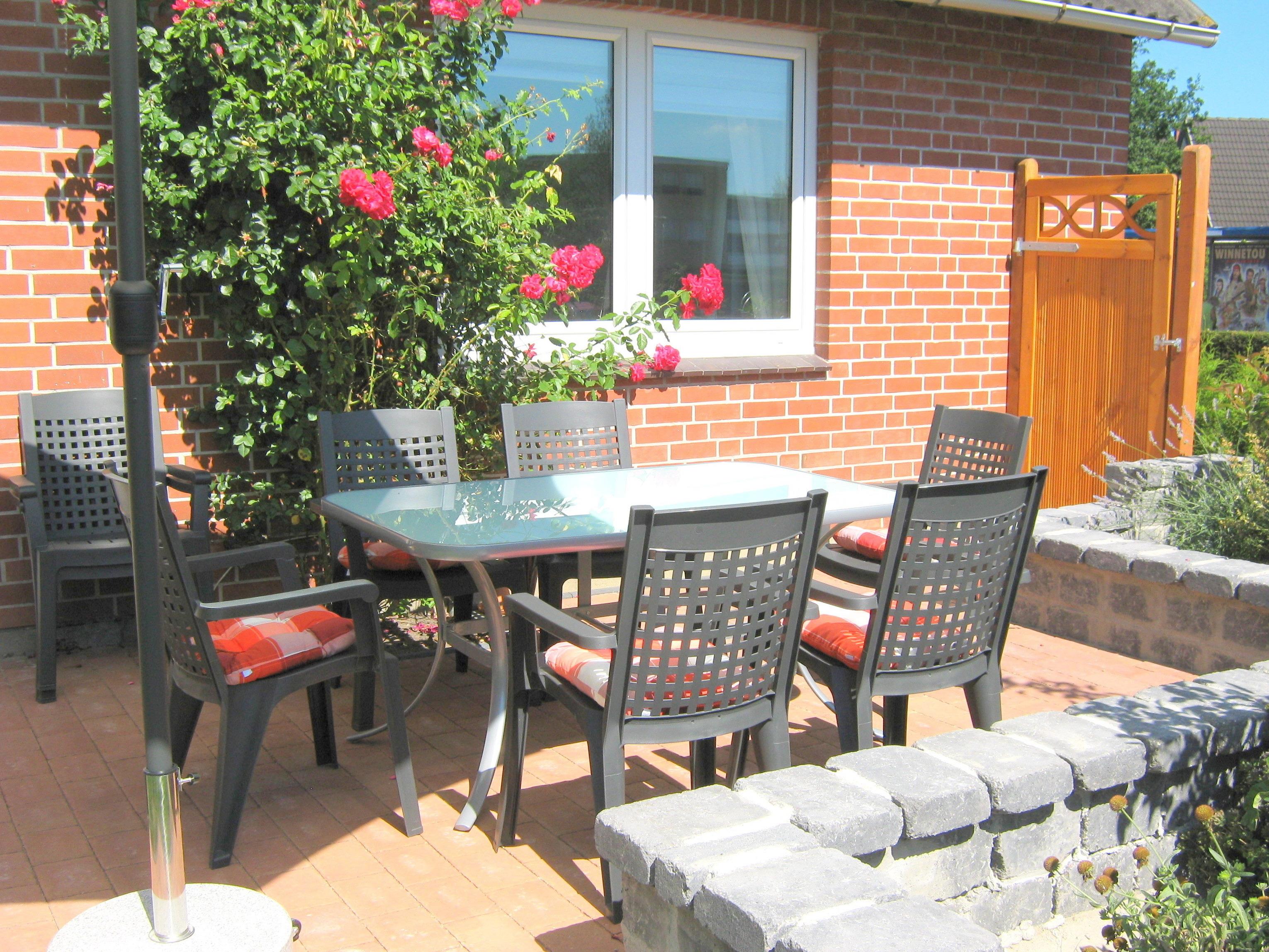 Vom Wohnbereich aus haben Sie direkten Zugang zur möblierten Terrasse sowie zum Garten. Im Erdgeschoss befinden sich außerdem ein Tageslicht-Duschbad mit WC, Dusche und einer Waschmaschine sowie eins der fünf Schlafzimmer. Dieses Schlafzimmer ist mit einem Doppelbett, einer Kommode sowie einer Einbauschrankwand versehen. Über die Treppe gelangen Sie in die erste Etage: Hier befindet sich ein weiteres Doppel-Schlafzimmer sowie ein Schlafzimmer mit einem Etagenbett (auch für Erwachsene geeignet) und zwei geräumige Einzelzimmer. Die beiden Einzelzimmer verfügen zusätzlich über einen Kleiderschrank. Im Doppelbettzimmer befindet sich ebenfalls ein großer Kleiderschrank und im Etagenbettzimmer finden Sie genug Platz in einem Schrank und zwei Kommoden . Ein weiteres Tageslicht-Duschbad mit WC ist hier vorhanden.