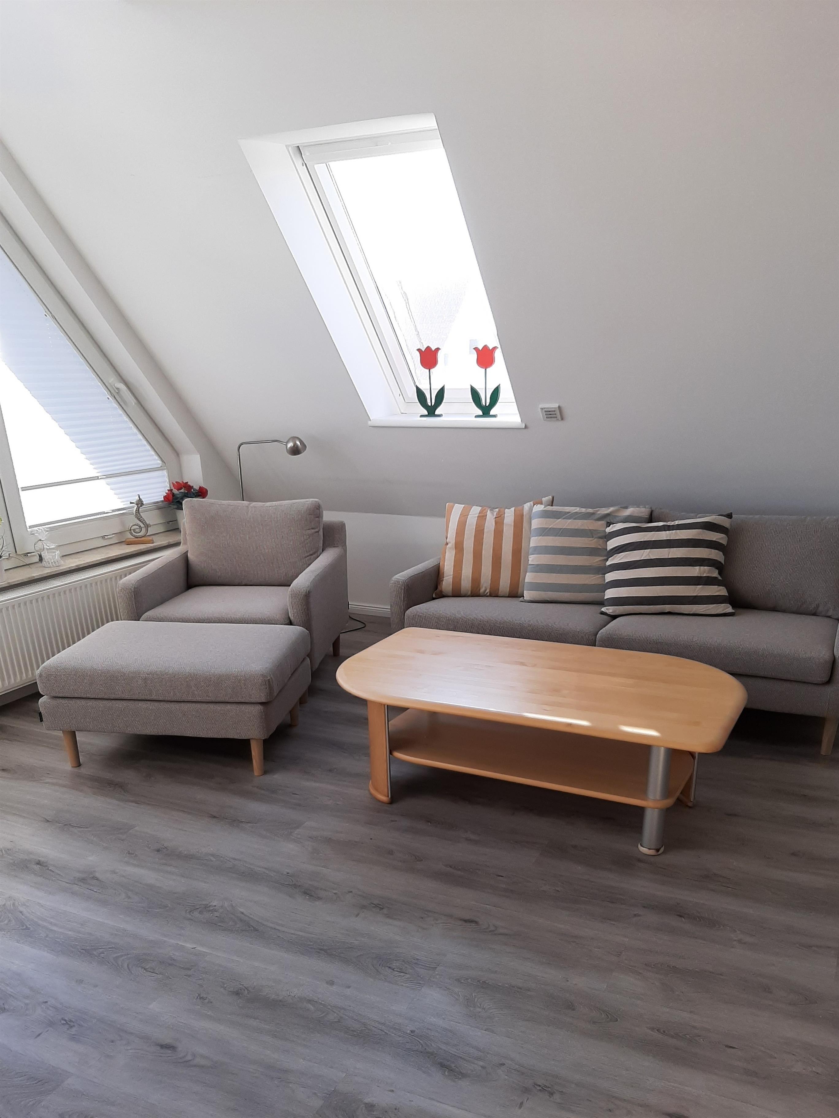 Diese Wohnung befindet sich in der 2. Etage und hat teilweise Seeblick. Das Wohnzimmer und Schlafzimmer sind mit Laminatboden ausgelegt. Im Wohnzimmer mit offener EBK, 4-Platten-Ceranfeld, Kühlschrank mit Gefrierfach, Geschirrspülmaschine, Mikrowelle, Kaffeemaschine, Toaster und Wasserkocher, Geschirr, Töpfe, Pfanne und Gläser gehören auch dazu. Eine gemütliche 2er-Sitzgruppe mit Beistelltisch sowie ein Esstisch mit Stühlen, ein großer TV-Flachbildfernseher und eine Stereoanlage sind ebenfalls in der Wohnung.