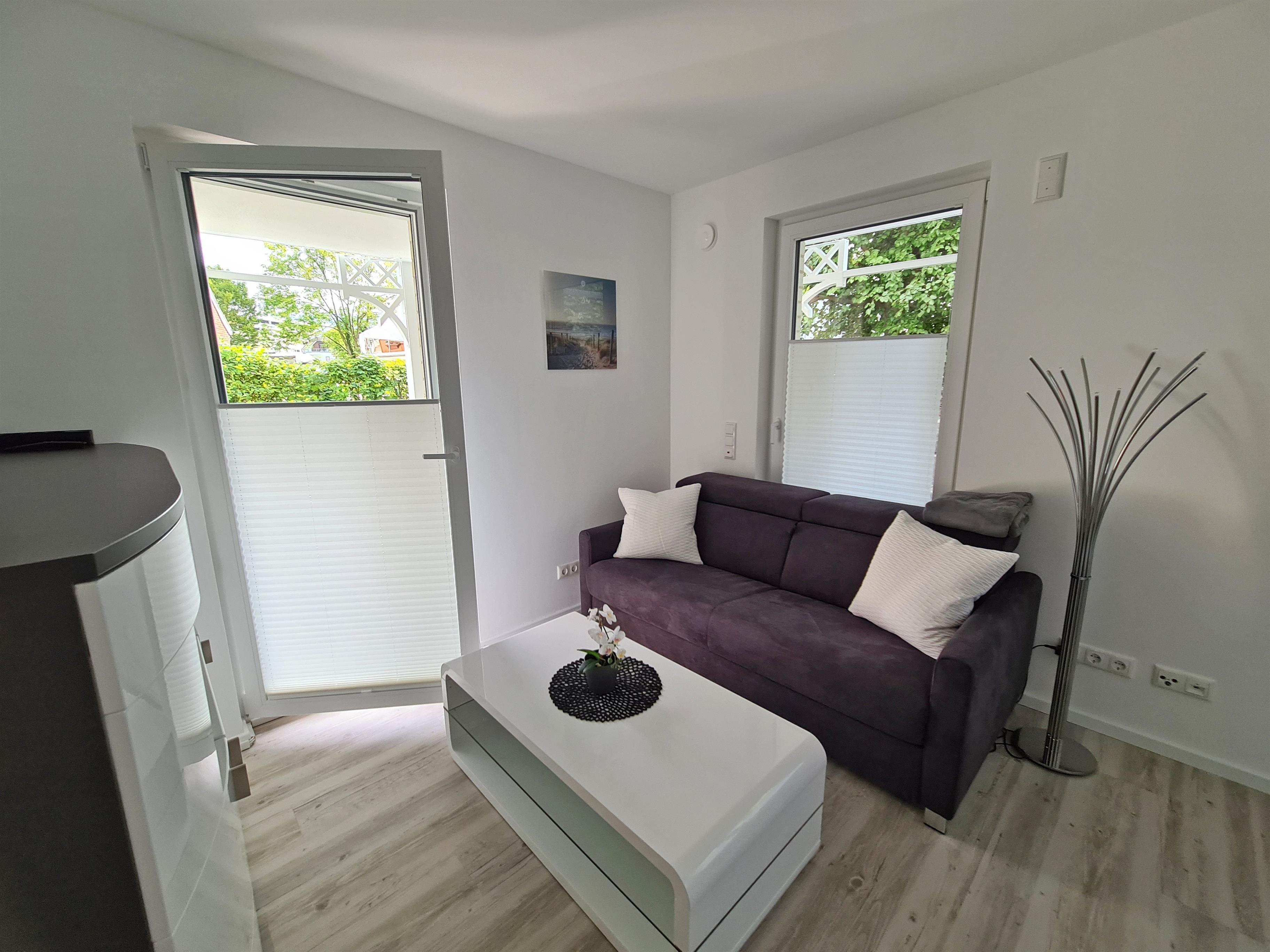 Das komfortable Apartment befindet sich im Erdgeschoß und verfügt über 44 qm mit separatem Eingang und einer Terrasse mit Sitzmöglichkeiten. Die Wohnung kann mit bis zu 3 Personen belegt werden. Das Apartment ist modern und hochwertig ausgestattet mit: Fußbodenheizung, elektrischen Rollläden, Internetanschluss mit WLAN, Vinylbodenbelag in grauer Holzoptik, Bad mit dezentraler Lüftung, eigener Pkw-Stellplatz sowie abschließbarer Fahrradschuppen. Bodentiefe Fenster sorgen für lichtdurchflutete Räume.