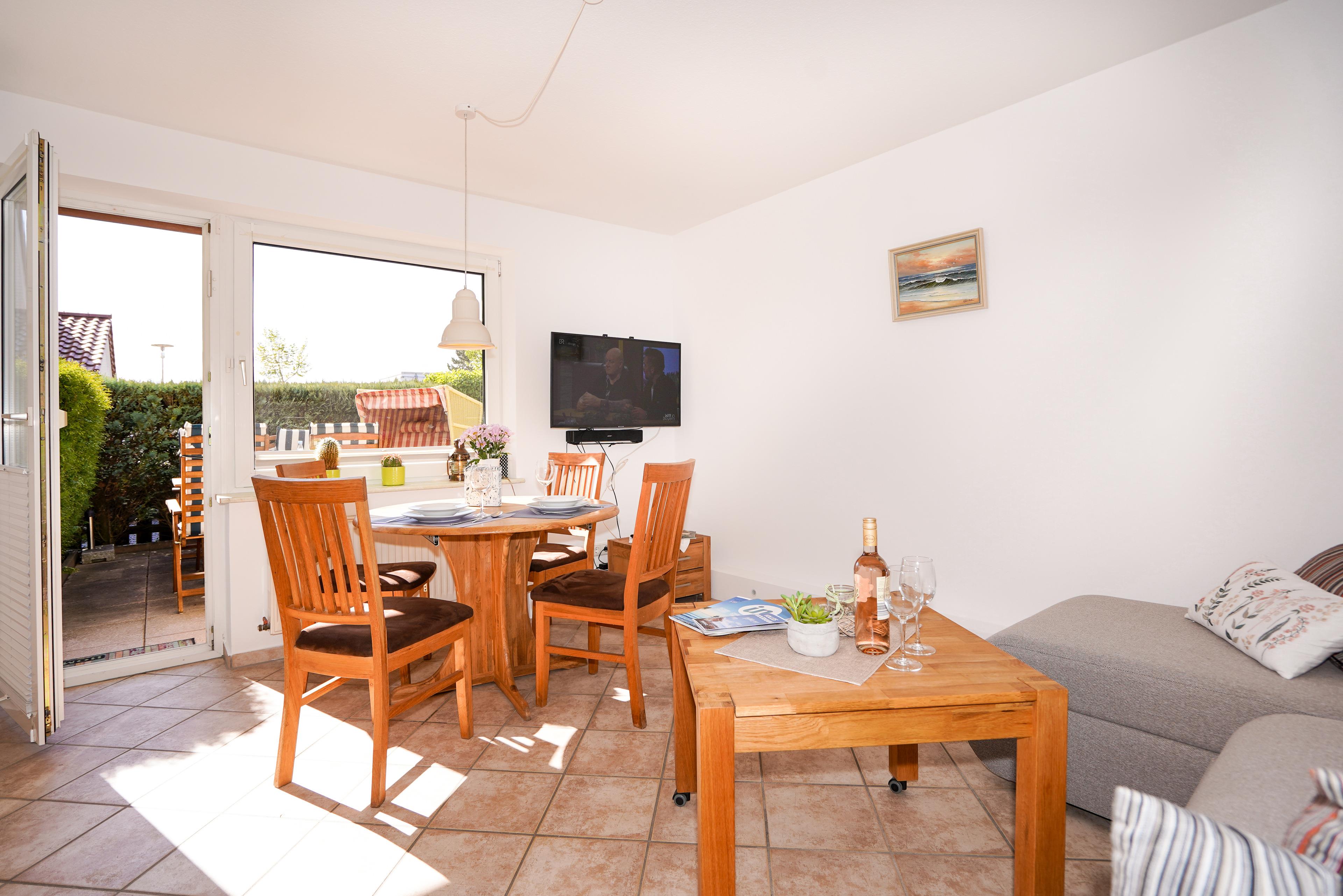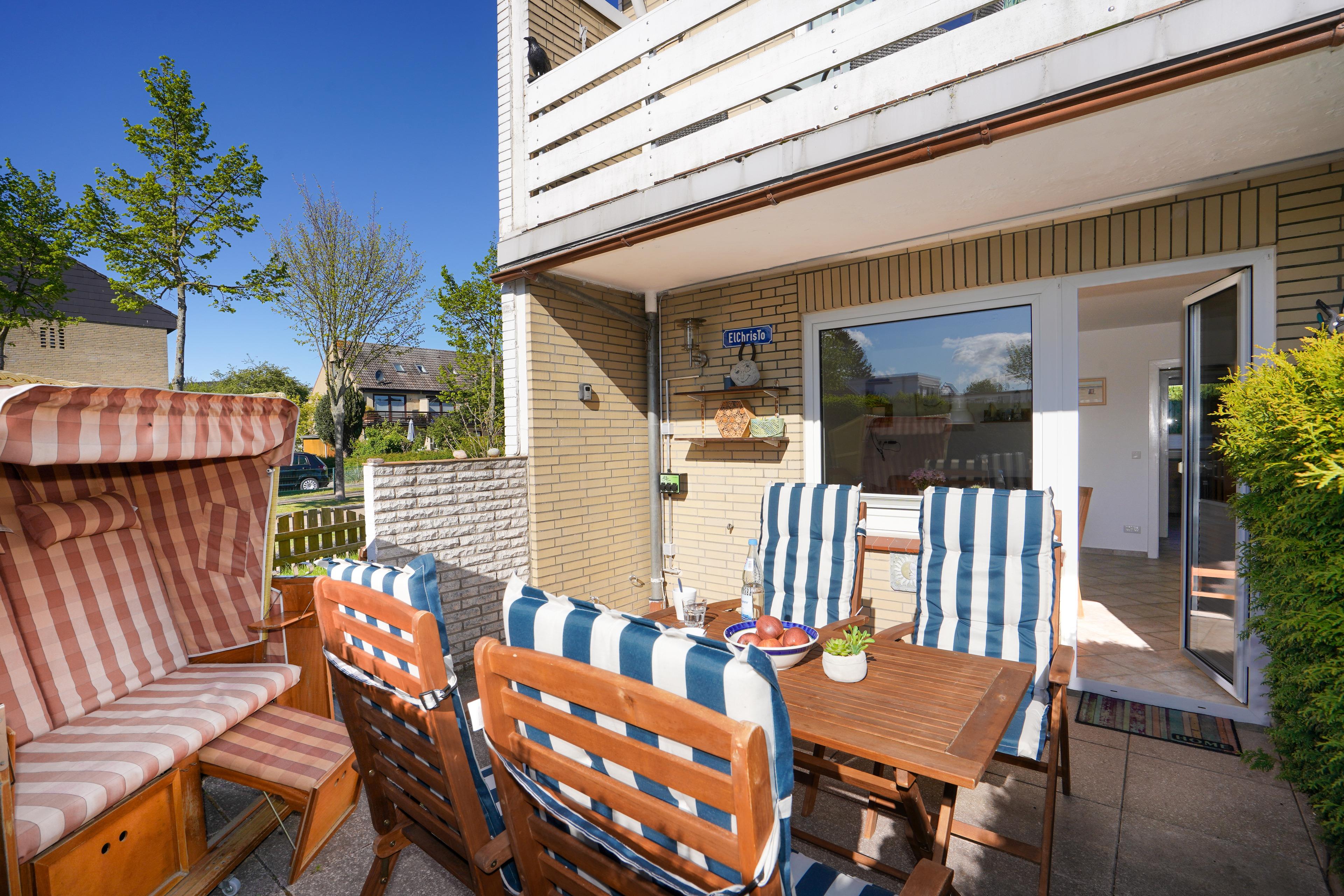 Charmante Terrassen-Ferienwohnung für bis zu 4 Personen in ruhiger Wohngegend gelegen. Der feinsandige Strand ist nur ca. 600 m entfernt.