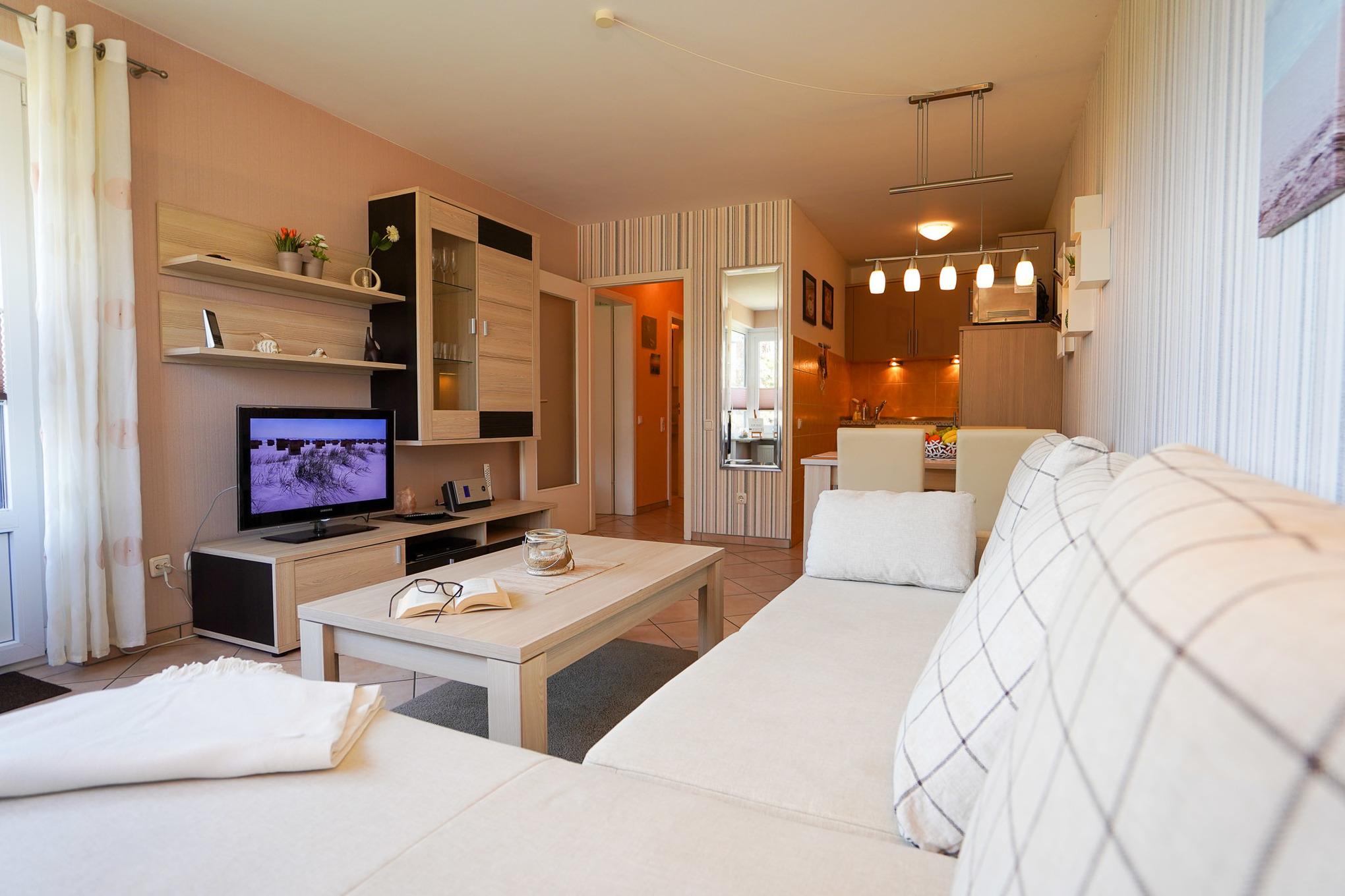 Besonders gemütliche und gepflegte 2 Zimmer Ferienwohnung mit möbliertem Balkon und Seeblick. Nur ein Steinwurf vom Strand entfernt!