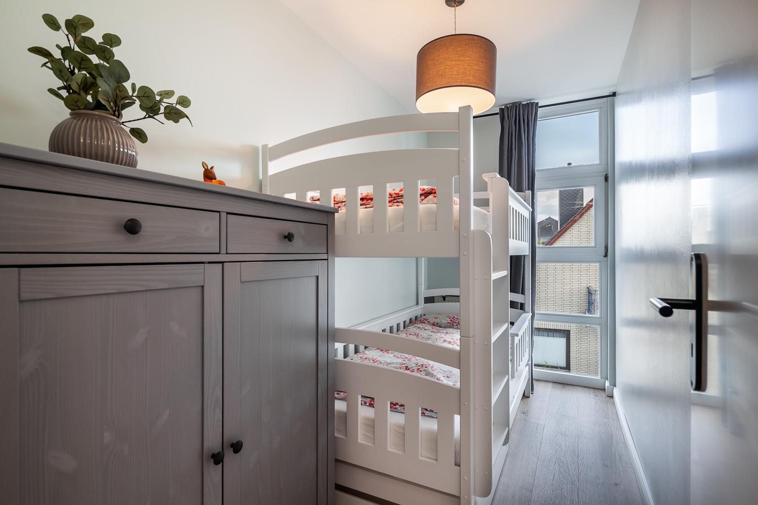 Das Kinderzimmer ist mit einem gemütlichen Hochbett für zwei Kinder und einem großen Wäscheschrank ausgestattet. Zusätzlich steht noch ein Schlafsofa im Wohnzimmer für ein weiteres Kind zur Verfügung.