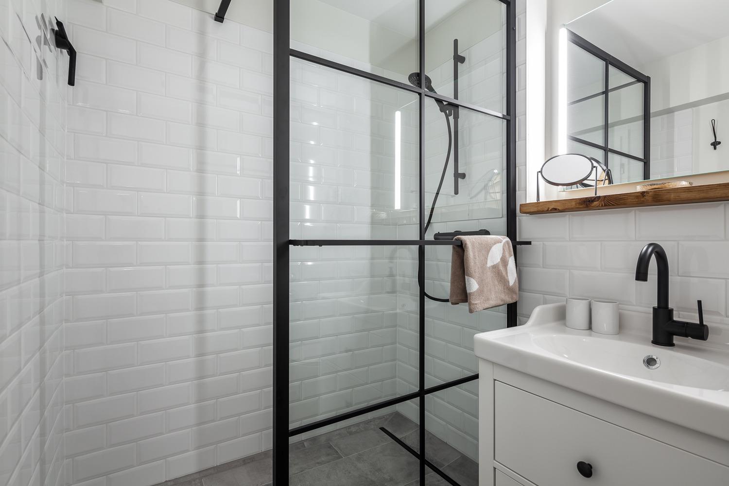 Das sanierte und modernisierte Badezimmer mit einer Walk-In Dusche präsentiert sich als Wohlfühloase. Ein geschmackvoller Waschtisch mit Unterschrank und 2 großen Schubladen, Handtuchheizung, Kosmetikspiegel, großem Spiegel mit Beleuchtung und Fön machen das Bad komplett.