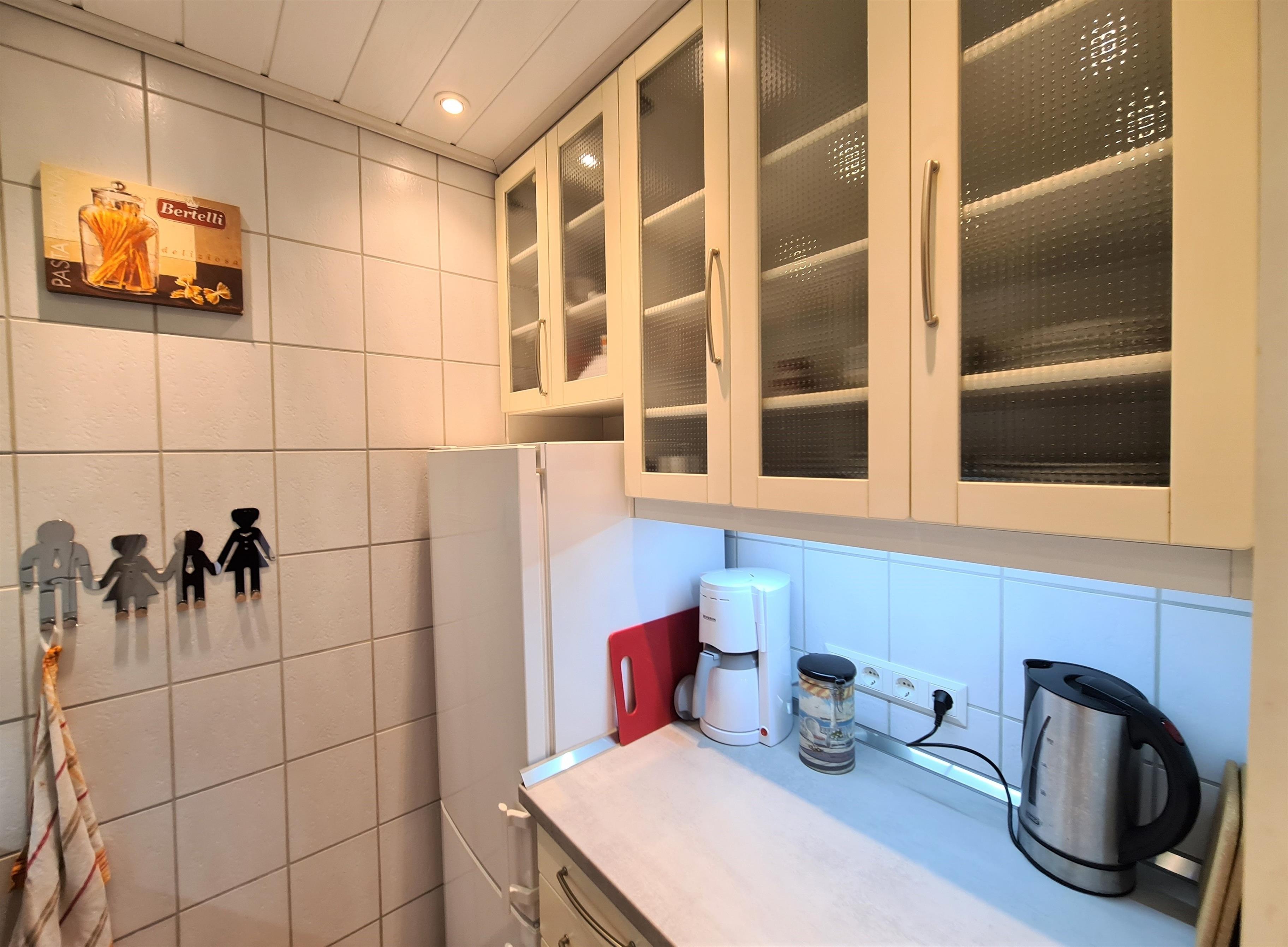 Ihre Wohnung hat eine voll ausgestattete Küche, ein Schlafzimmer mit Doppelbett (2x90x200) und ein hell gefliestes Duschbad mit Tageslicht.