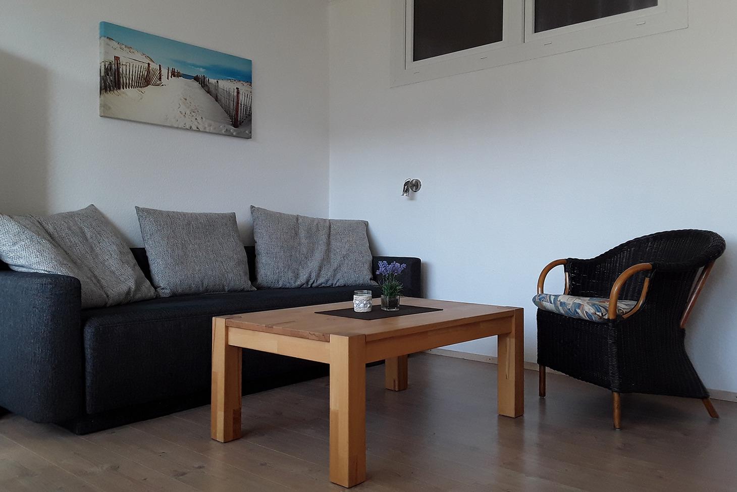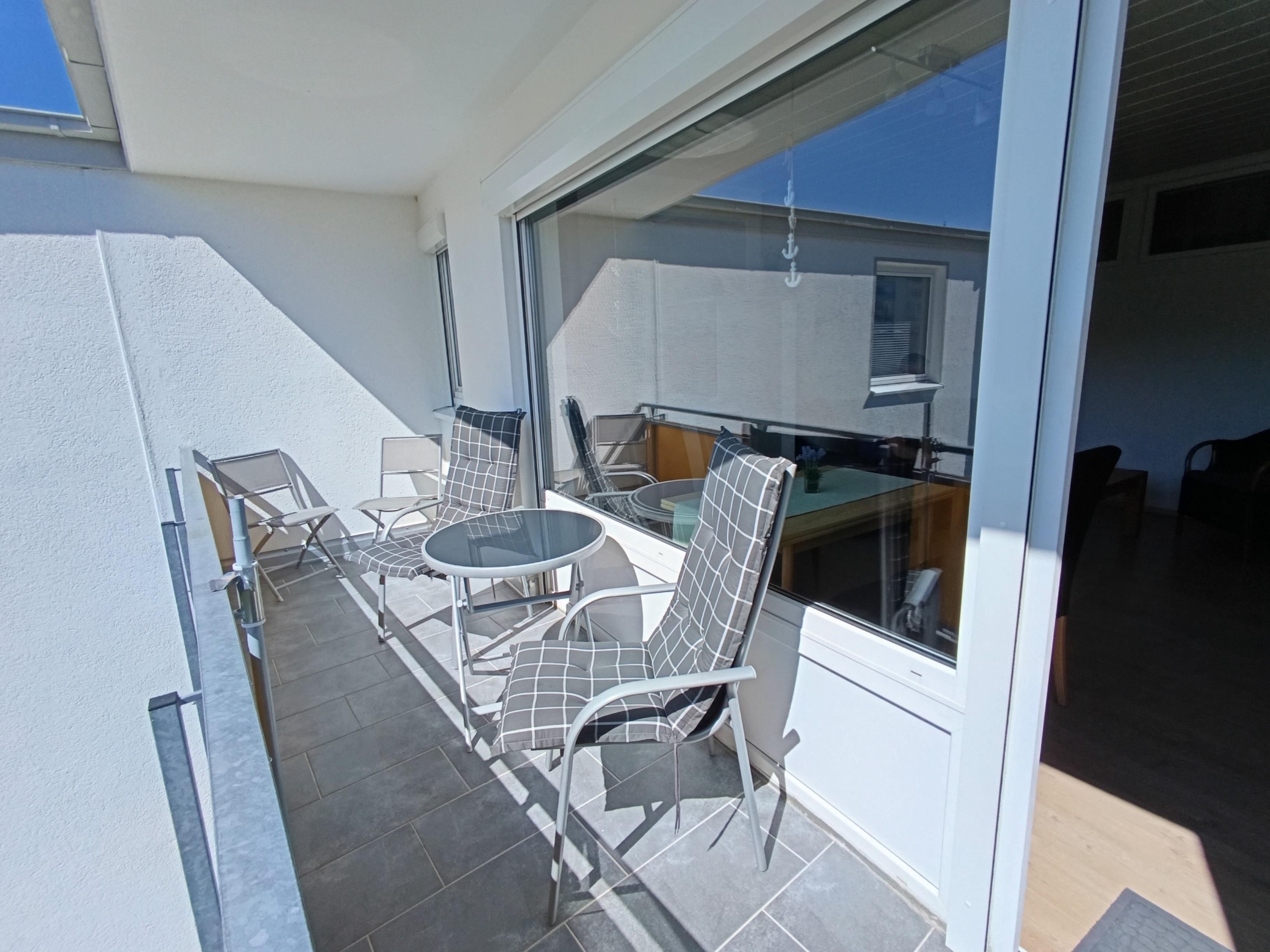 - Wohn-/Esszimmer mit Zugang zum Süd-West-Balkon mit Sitzgelegenheit